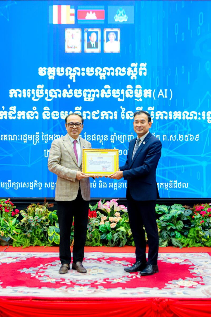 ឯកឧត្តមឧបនាយករដ្ឋមន្ត្រីប្រចាំការ ចាត់ទុកបច្ចេកវិទ្យា AI ជាកម្លាំងចលករយ៉ាងសំខាន់នៃកំណើនសេដ្ឋកិច្ច (Driver of Growth) សម្រាប់រយៈពេល ១០ ទៅ ២០ ឆ្នាំខាងមុខ ។ ឯកឧត្តមបានសង្កត់ធ្ងន់ថា ក្នុងបរិការណ៍នៃការប្រកួតប្រជែងសកល ប្រទេសនីមួយៗ រួមទាំងប្រទេសកម្ពុជាត្រូវ