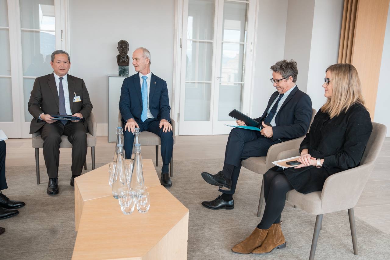 (ស្វីស)៖ រសៀលថ្ងៃចន្ទ ទី២៣ ខែកុម្ភៈ ឆ្នាំ២០២៦ សម្តេចមហាបវរធិបតី ហ៊ុន ម៉ាណែត នាយករដ្ឋមន្ត្រីកម្ពុជា បានជួបពិភាក្សាការងារជាមួយលោក Gilles Carbonnier អនុប្រធានគណៈកម្មាធិការ កាកបាទក្រហមអន្តរជាតិ នៅប្រទេសស្វីស៕
