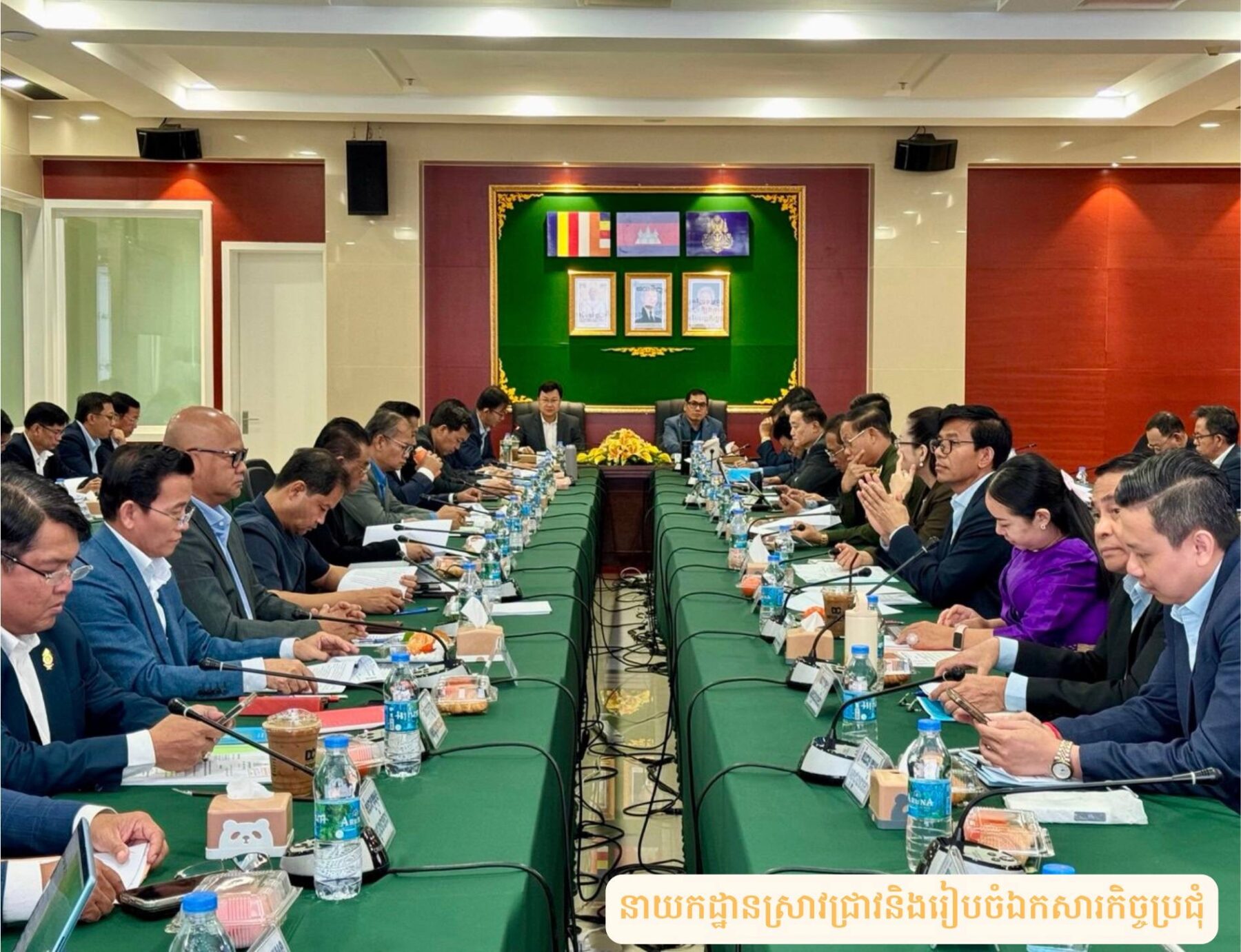 នាព្រឹកថ្ងៃអង្គារ ទី១០ ខែមីនា ឆ្នាំ២០២៦ វេលាម៉ោង០៨:៣០ព្រឹក នៅទីស្តីការគណៈរដ្ឋមន្រ្តី សាលប្រជុំ៧-០៨ ជាន់ទី៧ អគារភាតរភាព មានរៀបចំកិច្ចប្រជុំអន្តរក្រសួង ក្រោមអធិបតីភាពឯកឧត្តម ប៊ិន ប៊ុនឆាត រដ្ឋលេខាធិការទីស្តីការគណៈរដ្ឋមន្ត្រី និងឯកឧត្តម ឌិត ទីណា រដ្ឋមន្ត្រីក្រសួងកសិកម្ម រុក្ខាប្រមាញ់ និងនេសាទ ដើម្បីពិនិត្យនិងពិភាក្សាលើ «សេចក្តីព្រាងអនុក្រឹត្យស្តីពីការពិន័យអន្តរការណ៍ចំពោះបទល្មើសនឹងច្បាប់ស្តីពីជលផល »។