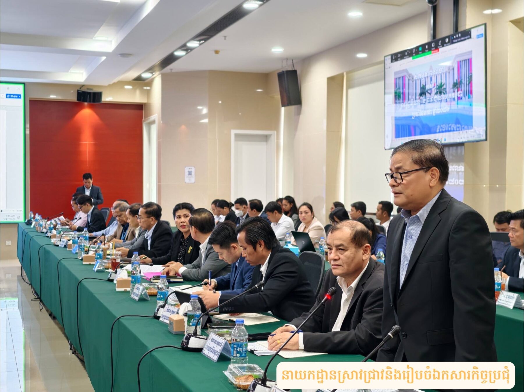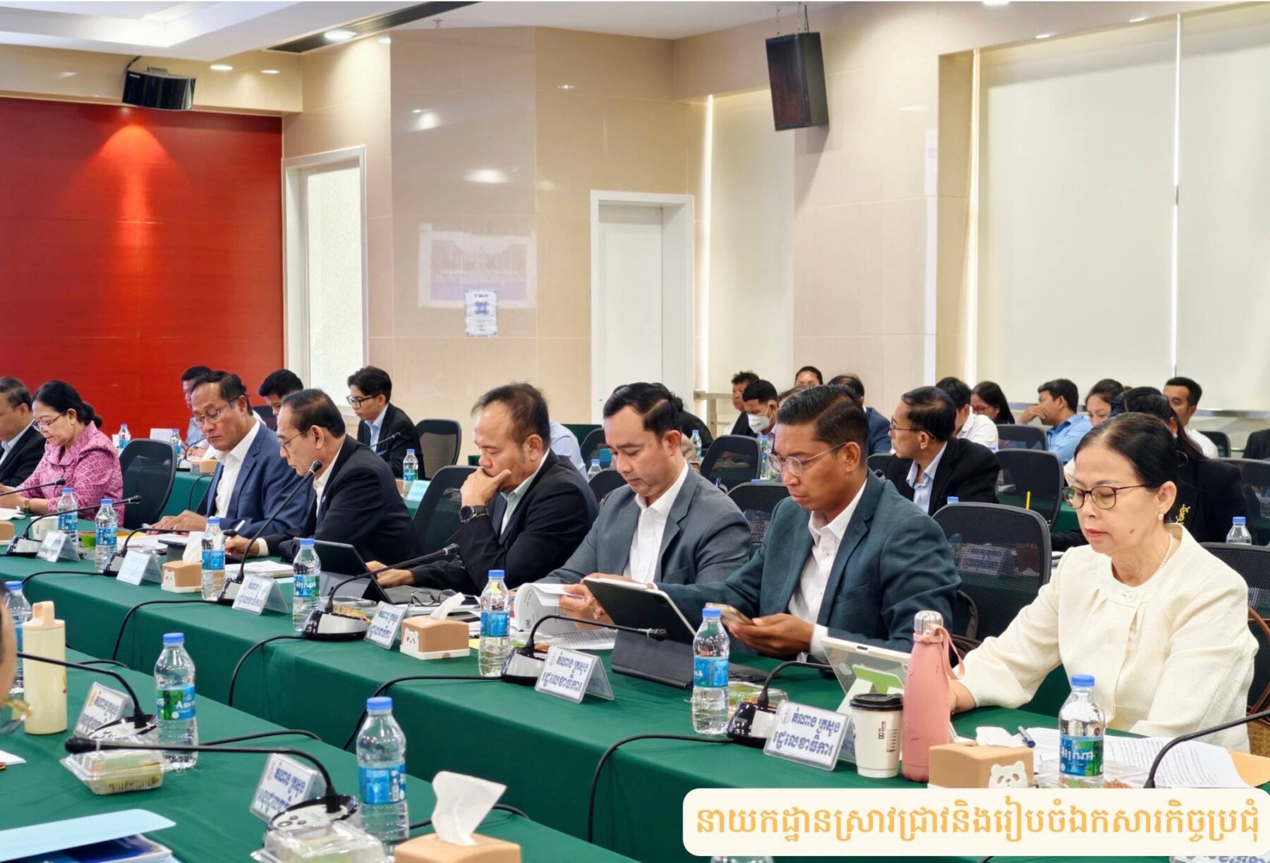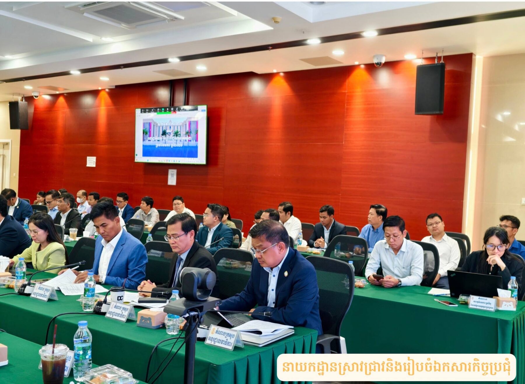 នាព្រឹកថ្ងៃអង្គារ ទី១៧ ខែមីនា ឆ្នាំ២០២៦ វេលាម៉ោង៨:៣០នាទីព្រឹក នៅទីស្តីការគណៈរដ្ឋមន្រ្តី សាលប្រជុំ៧-០៨ ជាន់ទី៧ អគារភាតរភាព មានរៀបចំកិច្ចប្រជុំអន្តរក្រសួង ក្រោមអធិបតីភាពឯកឧត្តម ឆឺយ រឿន រដ្ឋលេខាធិការទីស្តីការគណៈរដ្ឋមន្ត្រី ដើម្បីពិនិត្យនិងពិភាក្សាលើ សេចក្តីព្រាងរបាយការណ៍ស្ដីពីសកម្មភាពការងាររបស់រាជរដ្ឋាភិបាលនៃព្រះរាជាណាចក្រកម្ពុជា ប្រចាំខែមករា ឆ្នាំ២០២៦។