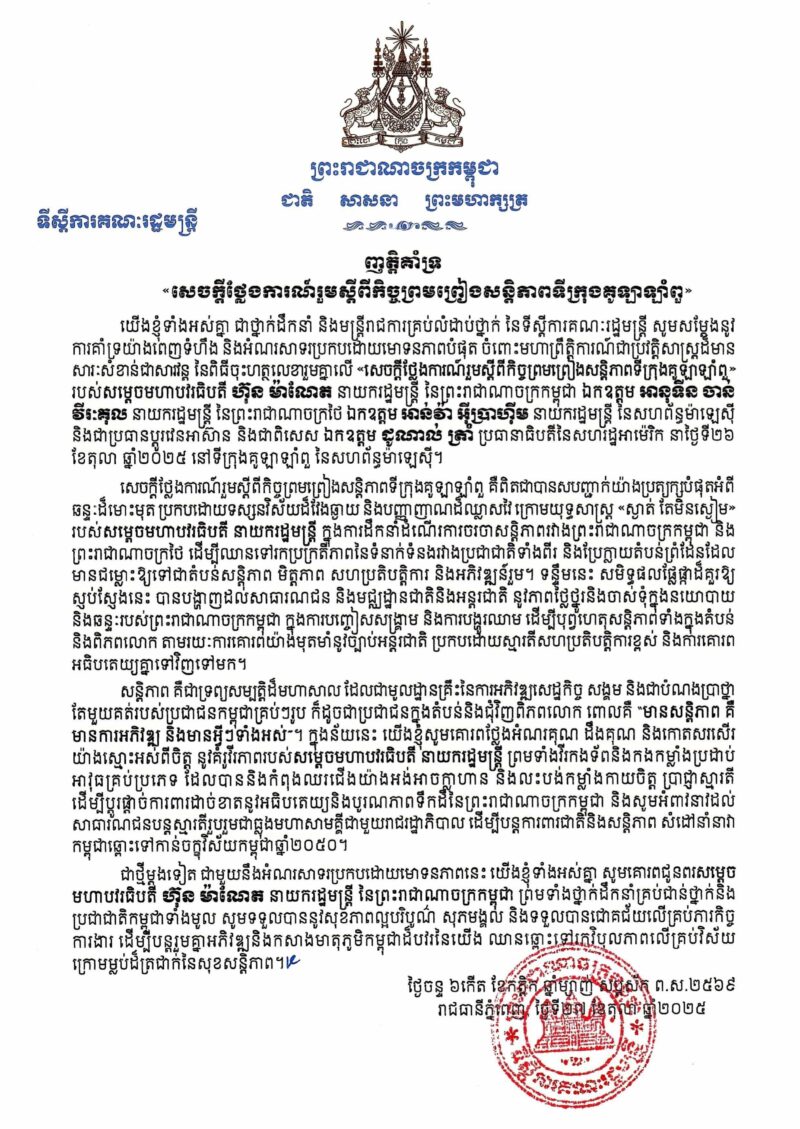 (ភ្នំពេញ)៖ នៅព្រឹកថ្ងៃទី២៥ ខែមីនា ឆ្នាំ២០២៥ ឯកឧត្តម វង្សី វិស្សុត ឧបនាយករដ្ឋមន្ត្រីប្រចាំការ រដ្ឋមន្ត្រីទទួលបន្ទុកទីស្តីការគណៈរដ្ឋមន្ត្រី និងជាប្រធានគណៈកម្មាធិការតាមដាន ត្រួតពិនិត្យ និងវាយតម្លៃការអនុវត្តយុទ្ធសាស្ត្របញ្ចកោណ ដំណាក់កាលទី១ (គ.យ.ប.) បានអញ្ជើញដឹកនាំកិច្ចប្រជុំ គ.យ.ប. លើកទី៤ ដើម្បីពិនិត្យនិងពិភាក្សាលើសូចនាករសមិទ្ធកម្មគន្លឹះ ដែលមិនទាន់បានកំណត់បន្ទាត់មូលដ្ឋាន និងចំណុចដៅពេញលេញនៅក្នុងតារាងម៉ាទ្រីសវាស់វែងសមិទ្ធកម្មរបស់ក្របខ័ណ្ឌតាមដាន ត្រួតពិនិត្យ និងវាយតម្លៃការអនុវត្តយុទ្ធសាស្ត្របញ្ចកោណ ដំណាក់កាលទី១ (ក្របខ័ណ្ឌ M&E-PS1)។ កិច្ចប្រជុំនេះ មានការអញ្ជើញចូលរួមពី ឯកឧត្តម ឈៀង យ៉ាណារ៉ា ទេសរដ្ឋមន្ត្រីទទួលបន្ទុកបេសកកម្មពិសេស និងជាអនុប្រធានប្រចាំការ គ.យ.ប., ឯកឧត្ដម ប៊ិន ត្រឈៃ រដ្ឋមន្ត្រីក្រសួងផែនការ និងជាអនុប្រធាន គ.យ.ប., ឯកឧត្ដមជាសមាជិក គ.យ.ប. និង ឯកឧត្ដម លោកជំទាវ លោក លោកស្រី ជាថ្នាក់ដឹកនាំ នៃទីស្ដីការគណៈរដ្ឋមន្រ្ដី និងអគ្គលេខាធិការដ្ឋាន គ.យ.ប. ផងដែរ។