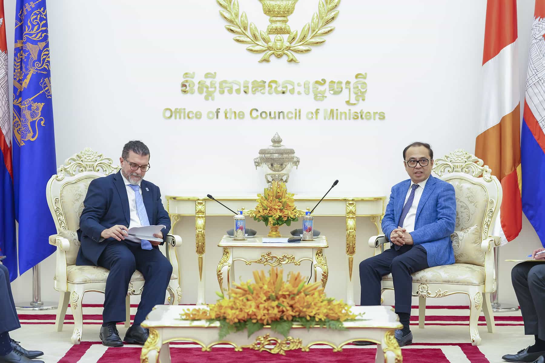 (រាជធានីភ្នំពេញ)៖ នាព្រឹកថ្ងៃទី០៨ ខែតុលា ឆ្នាំ២០២៥ ឯកឧត្តម វង្សី វិស្សុត ឧបនាយករដ្ឋមន្ត្រីប្រចាំការ រដ្ឋមន្ត្រីទទួលបន្ទុកទីស្តីការគណៈរដ្ឋមន្ត្រី បានអនុញ្ញាតឱ្យលោក Enrico Gaveglia តំណាងថ្មីនៃកម្មវិធីអភិវឌ្ឍន៍អង្គការសហប្រជាជាតិ(UNDP) ប្រចាំព្រះរាជាណាចក្រកម្ពុជា ចូលជួបសម្តែងការគួរសម និងពិភាក្សាការងារ នៅទីស្តីការគណៈរដ្ឋមន្ត្រី។