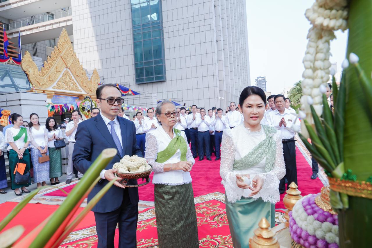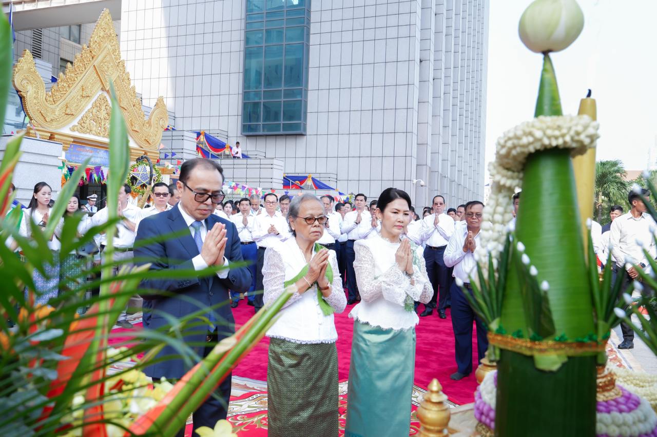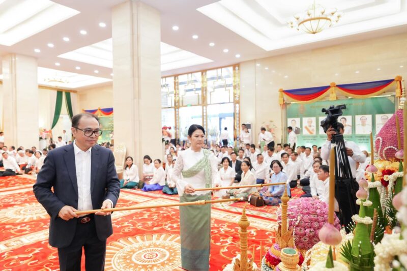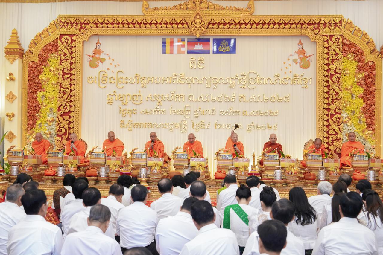 (ភ្នំពេញ)៖ នៅព្រឹកថ្ងៃទី៩ ខែមេសា ឆ្នាំ២០២៥នេះ នៅទីស្តីការគណៈរដ្ឋមន្ត្រី ក្នុងឱកាសត្រៀមទទួលអំណរសាទរក្នុងឱកាសបុណ្យចូលឆ្នាំថ្មីប្រពៃណីជាតិខ្មែរ ឆ្នាំម្សាញ់ សប្តស័ក ព.ស.២៥៦៩ ដែលនឹងឈានមកដល់នាពេលឆាប់ៗខាងមុខនេះ ឯកឧត្តមឧបនាយករដ្ឋមន្ត្រីប្រចាំការ វង្សី វិស្សុត រដ្ឋមន្ត្រីទទួលបន្ទុកទីស្តីការគណៈរដ្ឋមន្ត្រី និងលោកជំទាវ រួមជាមួយថ្នាក់ដឹកនាំ មន្ត្រីរាជការក្រោមឱវាទ បាននិមន្តព្រះសង្ឃ សូត្រមន្ត ចម្រើនព្រះបរិត្ត ដើម្បីជម្រុះនូវឧបទ្រពចង្រៃ ក្នុងឆ្នាំចាស់ និងទទួលនូវពរជ័យសិរីមង្គលពីទេវតាឆ្នាំ្មថ្មី។