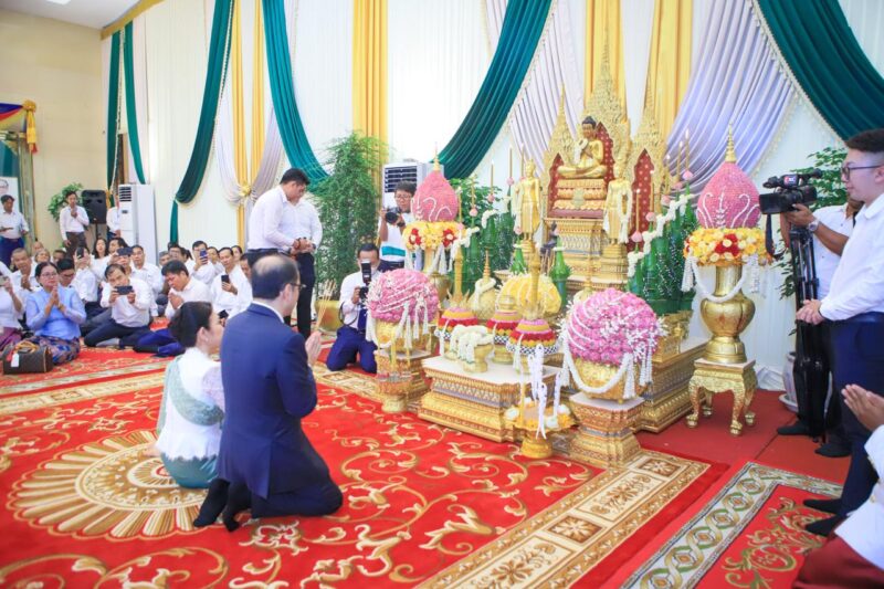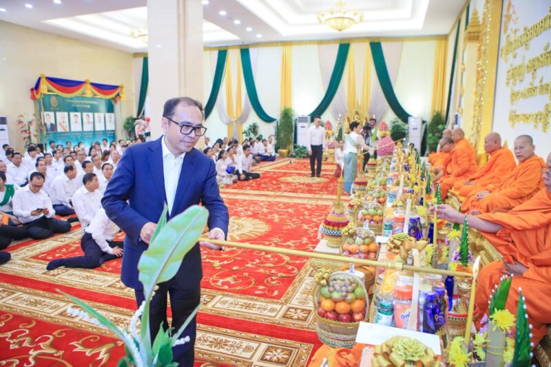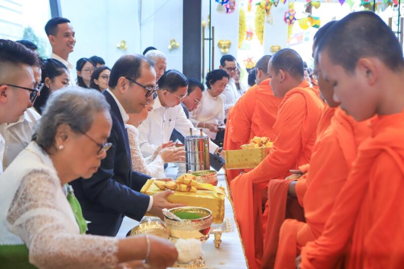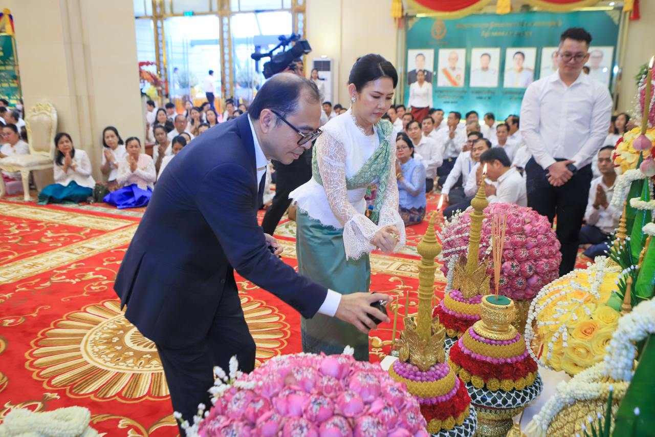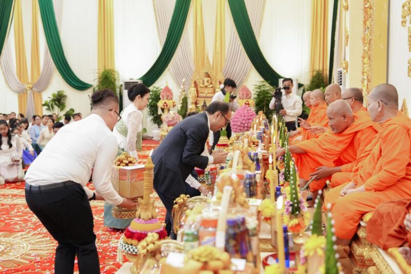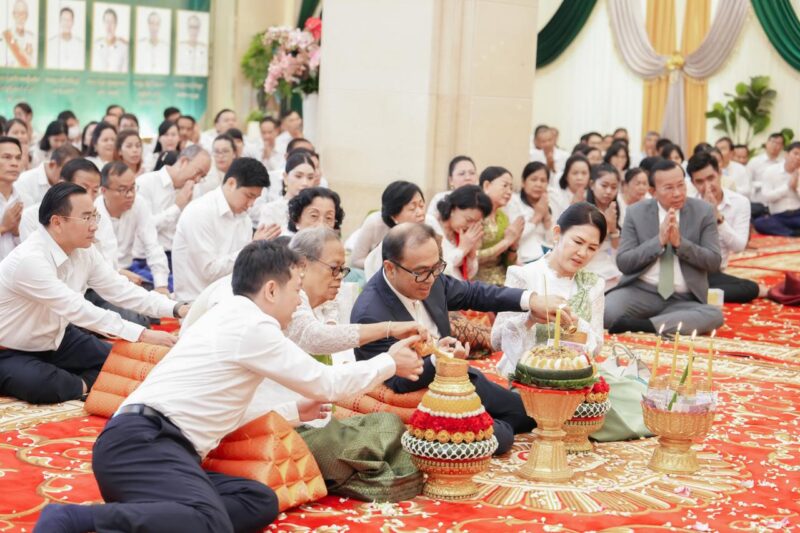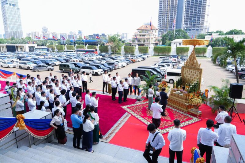 (ភ្នំពេញ)៖ នៅព្រឹកថ្ងៃទី៩ ខែមេសា ឆ្នាំ២០២៥នេះ នៅទីស្តីការគណៈរដ្ឋមន្ត្រី ក្នុងឱកាសត្រៀមទទួលអំណរសាទរក្នុងឱកាសបុណ្យចូលឆ្នាំថ្មីប្រពៃណីជាតិខ្មែរ ឆ្នាំម្សាញ់ សប្តស័ក ព.ស.២៥៦៩ ដែលនឹងឈានមកដល់នាពេលឆាប់ៗខាងមុខនេះ ឯកឧត្តមឧបនាយករដ្ឋមន្ត្រីប្រចាំការ វង្សី វិស្សុត រដ្ឋមន្ត្រីទទួលបន្ទុកទីស្តីការគណៈរដ្ឋមន្ត្រី និងលោកជំទាវ រួមជាមួយថ្នាក់ដឹកនាំ មន្ត្រីរាជការក្រោមឱវាទ បាននិមន្តព្រះសង្ឃ សូត្រមន្ត ចម្រើនព្រះបរិត្ត ដើម្បីជម្រុះនូវឧបទ្រពចង្រៃ ក្នុងឆ្នាំចាស់ និងទទួលនូវពរជ័យសិរីមង្គលពីទេវតាឆ្នាំ្មថ្មី។
