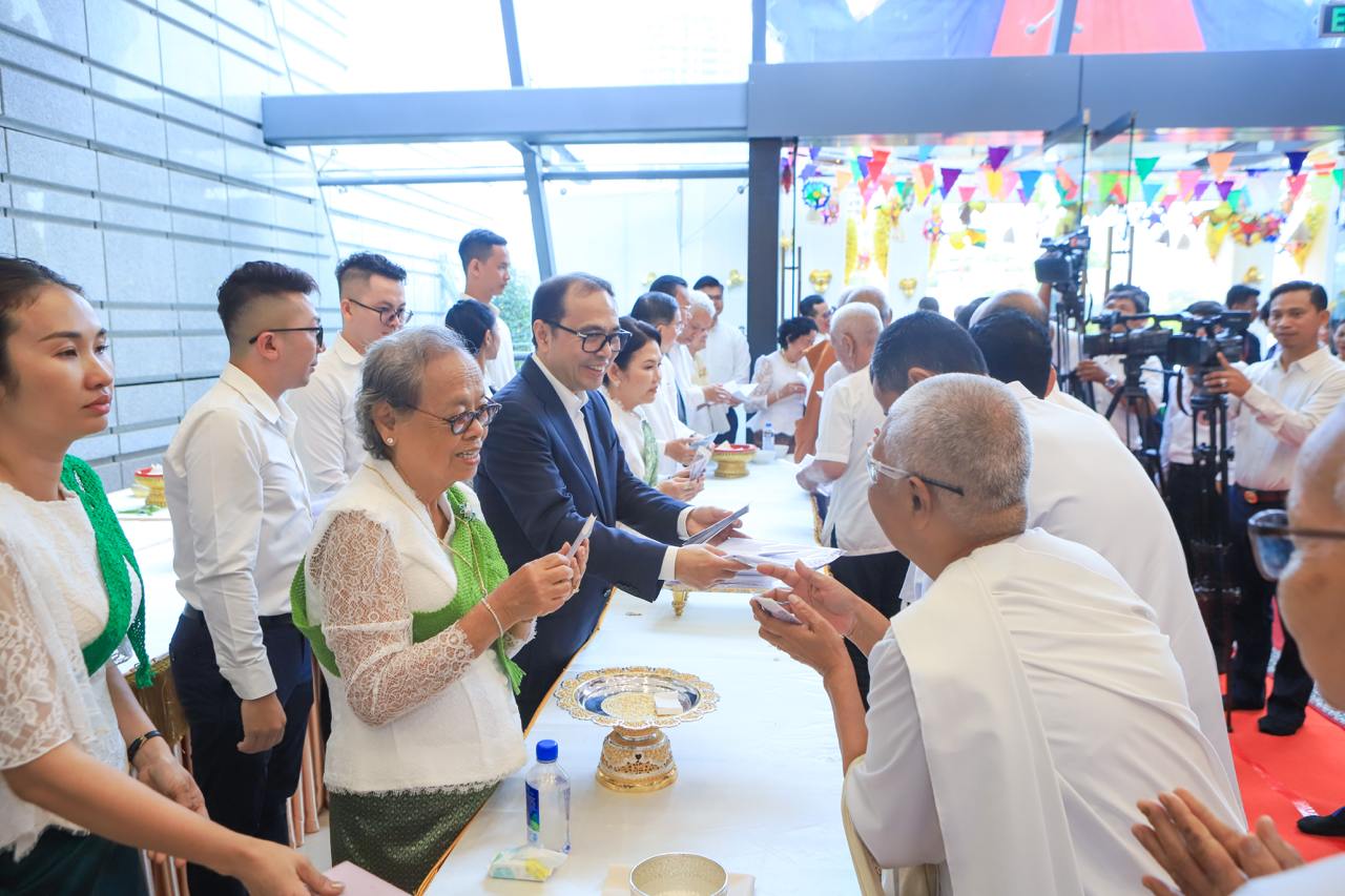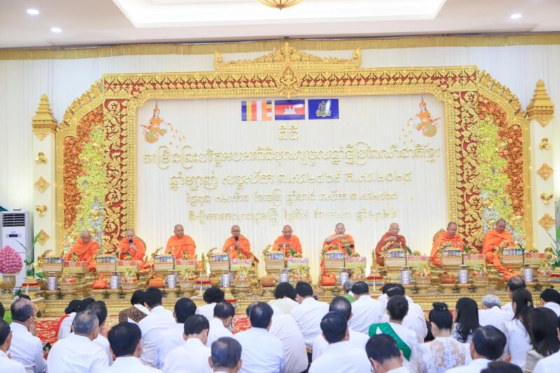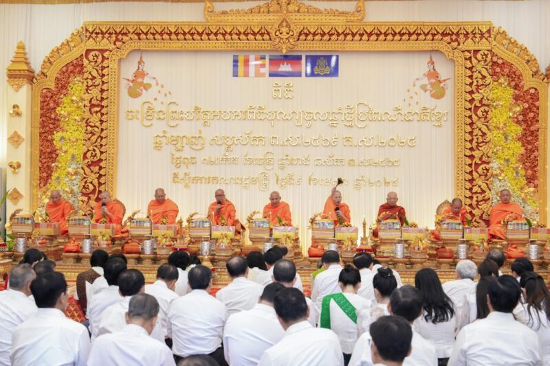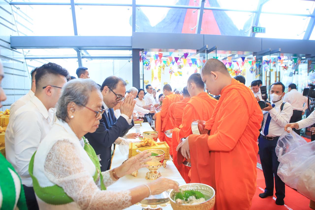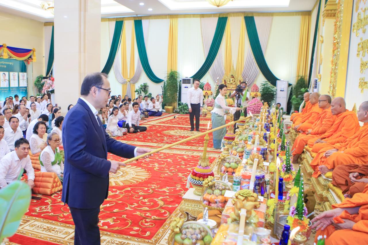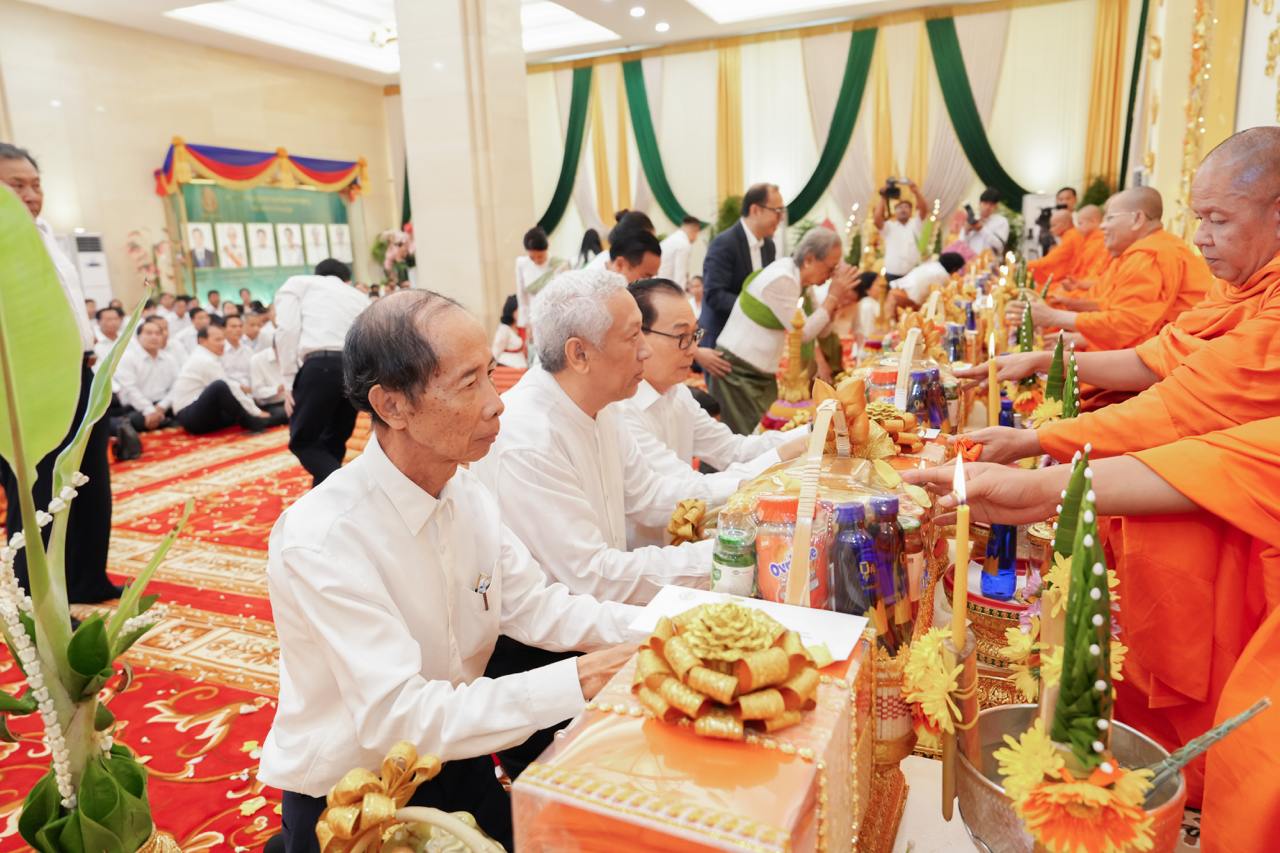 នៅក្នុងពិធីនេះ ក៏មានការយាងនិមន្តប្រោះព្រំពីសម្តេចព្រះរាជាគណៈ និងមន្រ្តីសង្ឃចំនួន ៩អង្គ និងរាប់បាត្រប្រគេនព្រះសង្ឃចំនួន ៦២អង្គ ដើម្បីអបអរសាទរពិធីបុណ្យចូលឆ្នាំថ្មីប្រពៃណីជាតិ ឆ្នាំម្សាញ់ សប្តស័ក ព.ស.២៥៦៩ ដែលនឹងឈានមកដល់នាពេលខាងមុខនេះ និងដើម្បីបង្សុកូលជូនដល់វិញ្ញាណក្ខន្ធថា្នក់ដឹកនាំទីស្តីការគណៈរដ្ឋមន្រ្តី រួមមាន ឯកឧត្តម អ៊ុង ផន, សម្តេចវិបុលបញ្ញា សុខ អាន និង សម្តេចចៅហ្វាវាំង វរវៀងជ័យ អធិបតីស្រឹង្គារ គង់ សំអុល ព្រមទាំងថ្នាក់ដឹកនាំ និងមន្ត្រីរាជការទាំងអស់ ដែលមានស្នាដៃចំពោះទីស្តីការគណៈរដ្ឋមន្រ្តី ហើយបានបូជាអាយុជីវិត ដើម្បីបុព្វហេតុជាតិមាតុភូមិ។ ព្រមជាមួយនោះ ព្រះសង្ឃទ្រង់បានស្វាធ្យាយសត្តប្បករុណាភិធម្ម បង្សុកូល ជាកិច្ចឧទ្ទិសកុសល ផលបុណ្យជូនវិញ្ញាណក្ខន្ធបុព្វការីជន មាតាបិតា ជីដូនជីតា និងញាតកាទាំង៧សន្ដាន ដែលបានចែកឋានទៅកាន់បរលោកខាងមុខ សូមវិញ្ញាណក្ខន្ធអ្នកទាំងអស់ បានទៅសោយសុខក្នុងឋានសុគតិភព កុំបីឃ្លៀងឃ្លាតឡើយ។