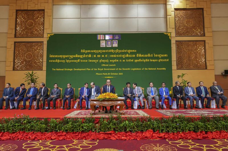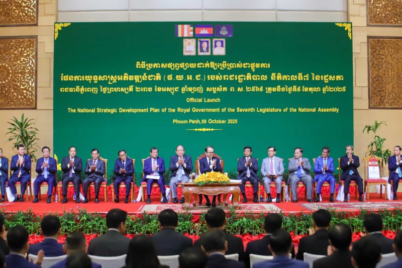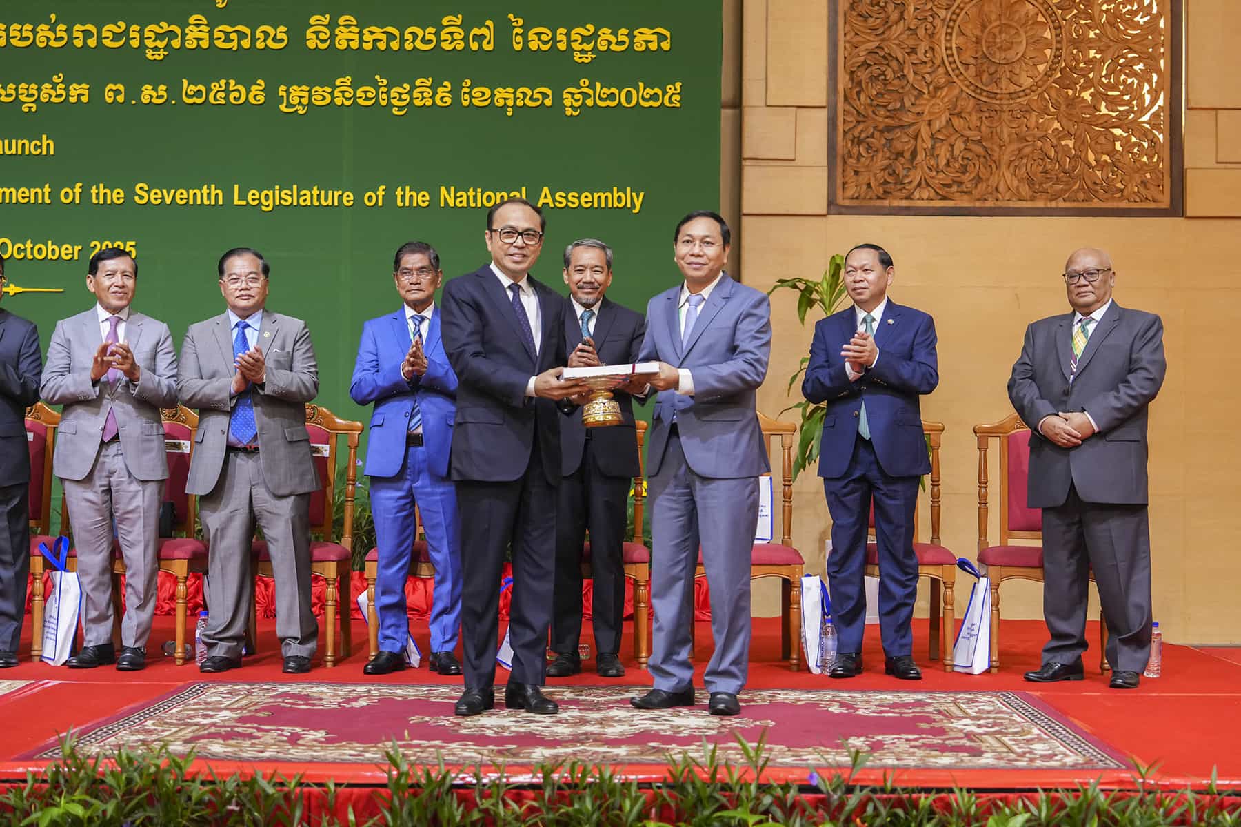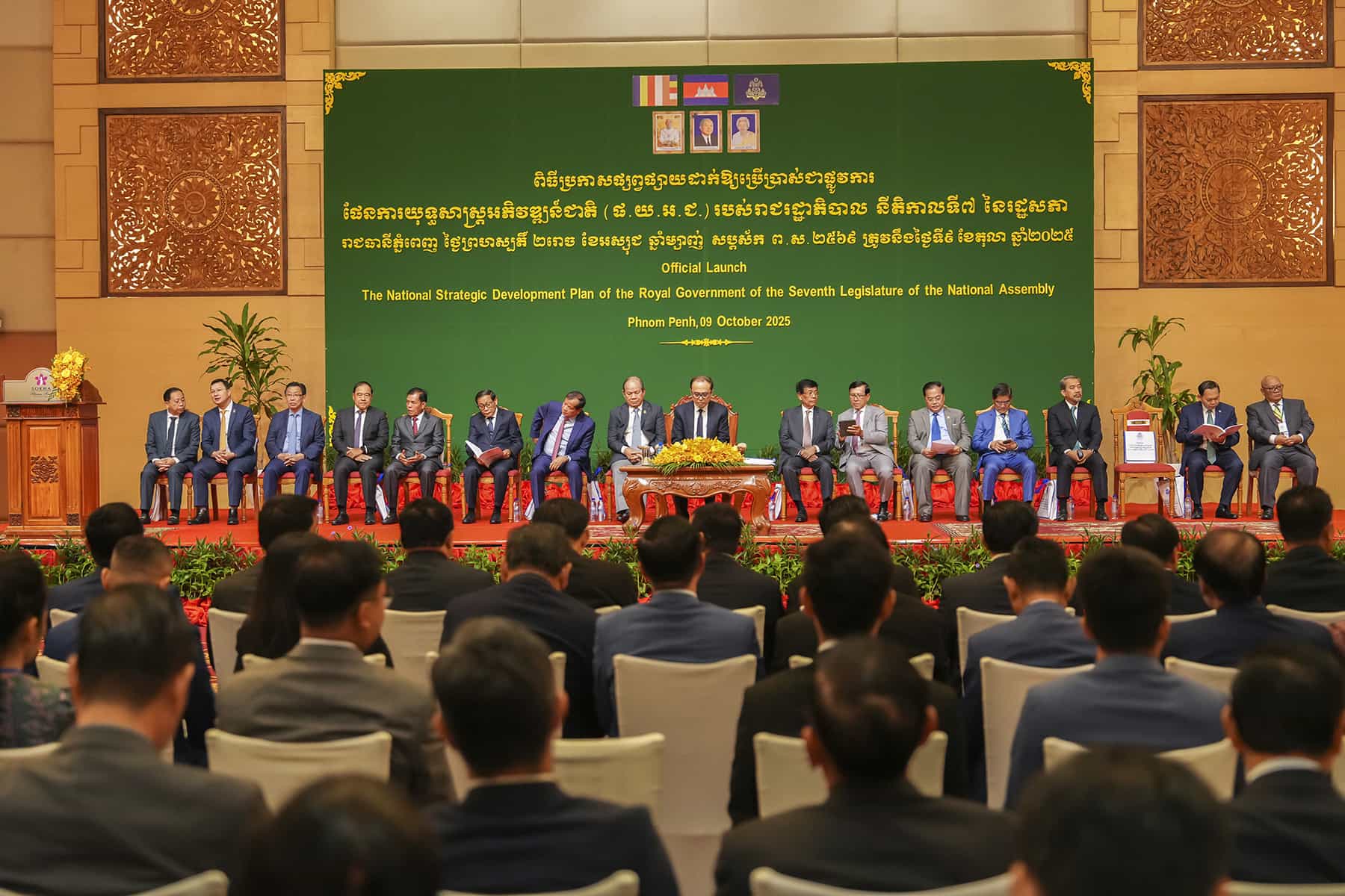 (ភ្នំពេញ)៖ នាព្រឹកថ្ងៃទី៩ ខែតុលា ឆ្នាំ២០២៥ ឯកឧត្តម វង្សី វិស្សុត ឧបនាយករដ្ឋមន្រ្តីប្រចាំការ រដ្ឋមន្រ្តីទទួលបន្ទុកទីស្តីការគណៈរដ្ឋមន្រ្តី តំណាងដ៏ខ្ពង់ខ្ពស់សម្តេចមហាបវរធិបតី ហ៊ុន ម៉ាណែត នាយករដ្ឋមន្ត្រីនៃព្រះរាជាណាចក្រកម្ពុជា បានអញ្ជើញជាអធិបតីក្នុងពិធីប្រកាសផ្សព្វផ្សាយដាក់ឱ្យប្រើប្រាស់ជាផ្លូវការ «ផែនការ យុទ្ធសាស្ត្រអភិវឌ្ឍន៍ជាតិរបស់រាជរដ្ឋាភិបាល នីតិកាលទី៧ នៃរដ្ឋសភា» ដោយមានការអញ្ជើញចូលរួមពីសំណាក់ ឯកឧត្តមទេសរដ្ឋមន្ត្រី រដ្ឋមន្ត្រី ដែលជាសមាជិករាជរដ្ឋាភិបាល ឯកឧត្តម លោកជំទាវ សមាជិក សមាជិកា ព្រឹទ្ធសភា រដ្ឋសភា និងតំណាងក្រសួង ស្ថាប័ន ឯកអគ្គរាជទូត ឯកអគ្គរដ្ឋទូត អភិបាលនៃគណៈអភិបាលរាជធានី ខេត្ត ព្រមទាំងលោក លោកស្រី តំណាងដៃគូអភិវឌ្ឍន៍ អង្គការសង្គមស៊ីវិល សរុបចំនួន៨២៩រូប។