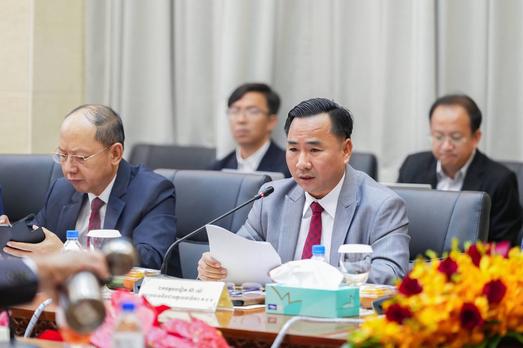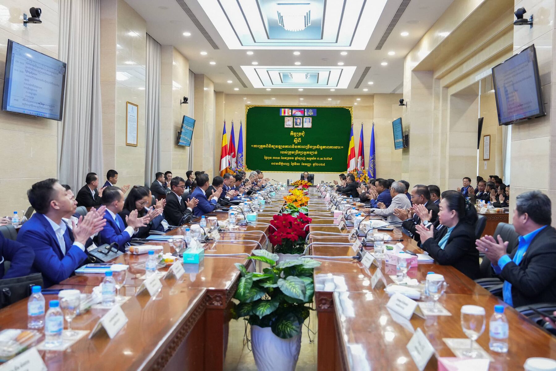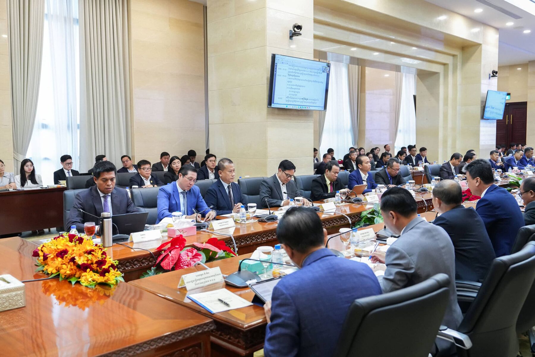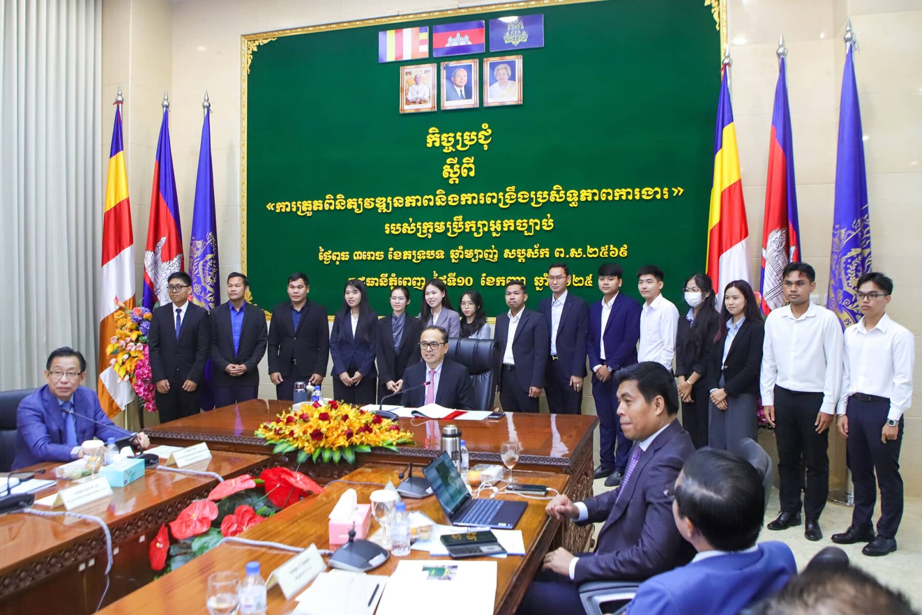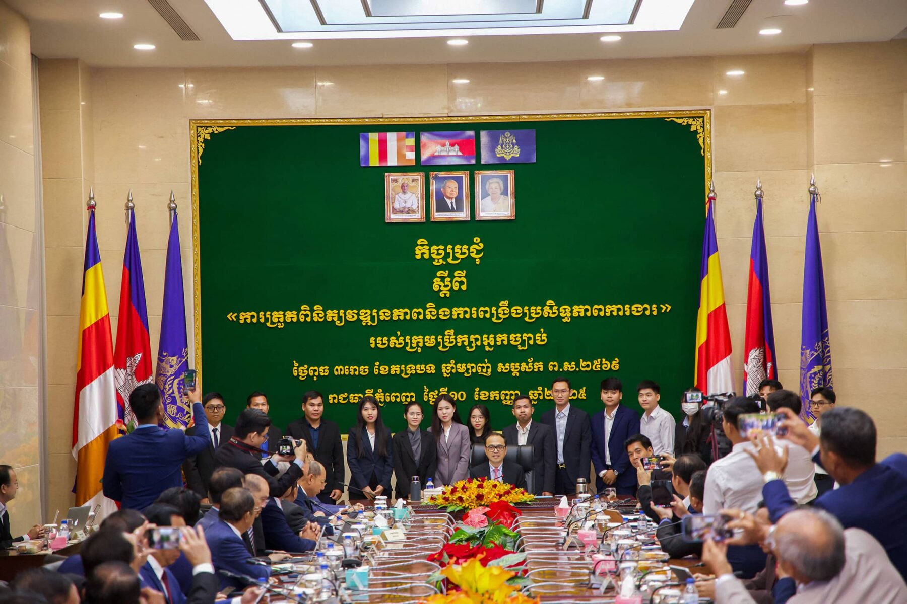 (ភ្នំពេញ)៖ ព្រឹកថ្ងៃពុធ ៣រោច ខែភទ្របទ ឆ្នាំម្សាញ់ សប្តស័ក ព.ស.២៥៦៩ ត្រូវនឹងថ្ងៃទី១០ ខែកញ្ញាឆ្នាំ២០២៥ ឯកឧត្តម វង្សី វិស្សុត ឧបនាយករដ្ឋមន្ត្រីប្រចាំការ រដ្ឋមន្ត្រីទទួលបន្ទុកទីស្តីការគណៈរដ្ឋមន្ត្រី និងជាប្រធានក្រុមប្រឹក្សាអ្នកច្បាប់ បានអញ្ជើញដឹកនាំកិច្ចប្រជុំត្រួតពិនិត្យវឌ្ឍនភាពនិងពង្រឹងប្រសិទ្ធភាពការងាររបស់ក្រុមប្រឹក្សាអ្នកច្បាប់ នៃទីស្តីការគណៈរដ្ឋមន្ត្រី ដោយមានការអញ្ជើញចូលរួមពីឯកឧត្ដមអនុប្រធាន ឯកឧត្តម លោកជំទាវ ជាទីប្រឹក្សា សមាជិក សមាជិកបម្រុង ជំនួយការ និងមន្រ្តីរាជការនៃអគ្គលេខាធិការដ្ឋានក្រុមប្រឹក្សាអ្នកច្បាប់ ដើម្បីធ្វើការតាមដាន ត្រួតពិនិត្យលើវឌ្ឍនភាពការងាររបស់ក្រុមប្រឹក្សាអ្នកច្បាប់ ក៏ដូចជាដើម្បីស្វែងរកនូវដំណោះស្រាយចំពោះបញ្ហាប្រឈមនានា ក្នុងគោលបំណងលើកកម្ពស់គុណភាព ប្រសិទ្ធភាព និងសមិទ្ធកម្មការងារ ក៏ដូចជាសមត្ថភាព ឯកទេសកម្ម និងវិជ្ជាជីវៈរបស់ក្រុមប្រឹក្សាអ្នកច្បាប់ នៃទីស្តីការគណៈរដ្ឋមន្រ្តី។