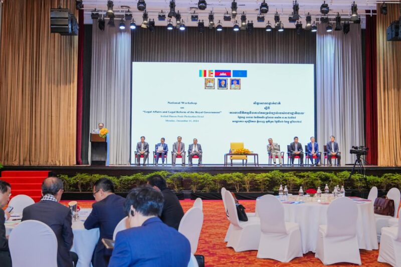 (រាជធានីភ្នំពេញ)៖ នៅព្រឹកថ្ងៃទី១៦ ខែធ្នូ ឆ្នាំ២០២៤ ឯកឧត្តម វង្សី វិស្សុត ឧបនាយករដ្ឋមន្ត្រីប្រចាំការ រដ្ឋមន្ត្រីទទួលបន្ទុកទីស្តីការគណៈរដ្ឋមន្ត្រី និងជាប្រធានគណៈកម្មាធិការដឹកនាំការកែទម្រង់ច្បាប់ បានអញ្ជើញជាអធិបតីក្នុងពិធីបើកសិក្ខាសាលាថ្នាក់ជាតិស្តីពី «ការងារនីតិកម្មនិងការងារកែទម្រង់ច្បាប់របស់រាជរដ្ឋាភិបាល» ដោយមានការអញ្ជើញចូលរួមពីបណ្តាថ្នាក់ដឹកនាំតំណាងក្រសួងស្ថាប័ននៃរាជរដ្ឋាភិបាល តំណាងក្រសួងនីតិកម្មកូរ៉េ តំណាងដៃគូអភិវឌ្ឍន៍ សាស្ត្រាចារ្យនីតិសាស្ត្រ អ្នកច្បាប់ មេធាវី ព្រមទាំងអ្នកជំនាញការជាតិ និងអន្តរជាតិ ប្រមាណ២៥០នាក់។