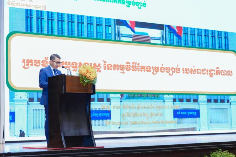 សិក្ខាសាលាថ្នាក់ជាតិដែលរៀបចំដោយ គណៈកម្មាធិការដឹកនាំការកែទម្រង់ច្បាប់នៃទីស្តីការគណៈរដ្ឋមន្ត្រីនៅពេលនេះ គឺជាឱកាសដ៏កម្រមួយសម្រាប់ការជួបជុំរបស់តួអង្គពាក់ព័ន្ធវិស័យច្បាប់ ដើម្បីពិភាក្សាចែករំលែកទស្សនៈ និងបទពិសោធជុំវិញការតាក់តែង ការអនុវត្ត ការពិនិត្យវាយតម្លៃ និងការដោះស្រាយវិវាទពាក់ព័ន្ធបទប្បញ្ញត្តិច្បាប់ បទដ្ឋានគតិយុត្ត និងប្រព័ន្ធច្បាប់នានា ឈានទៅប្រមើលមើលទស្សនវិស័យ នៃមុខងារនីតិកម្មនិងការកែទម្រង់ច្បាប់ឱ្យមានលក្ខណៈជាសកលផង និងស្របតាមបរិការណ៍ជាក់ស្តែងរបស់កម្ពុជាផង។