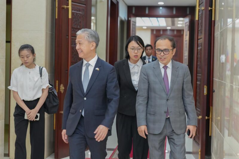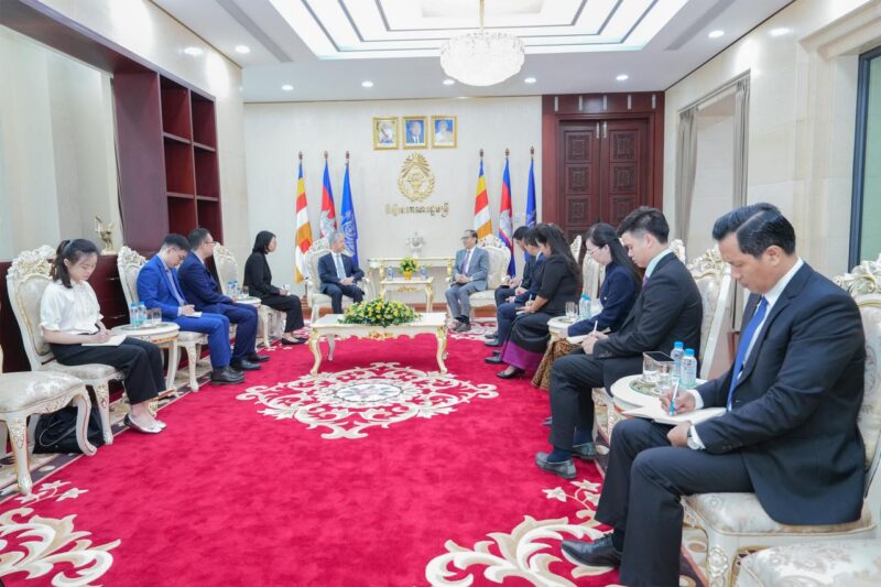 ភ្នំពេញ៖ កាលពីថ្ងៃទី១៨ ខែកញ្ញា ឆ្នាំ២០២៤ ឯកឧត្តម វង្សី វិស្សុត ឧបនាយករដ្ឋមន្ត្រីប្រចាំការ រដ្ឋមន្ត្រីទទួលបន្ទុកទីស្តីការគណៈរដ្ឋមន្ត្រីបានទទួលជួបពិភាក្សាការងារទ្វេភាគីជាមួយឯកឧត្តម Wang Wenbin ឯកអគ្គរដ្ឋទូតចិនប្រចាំនៅកម្ពុជា ដើម្បីពង្រឹងកិច្ចសហប្រតិបត្តិការ និងទំនាក់ទំនងទ្វេភាគីរវាងប្រទេសទាំងពីរឱ្យកាន់តែល្អប្រសើរបន្ថែមទៀត។