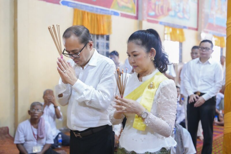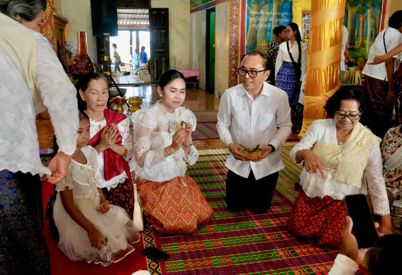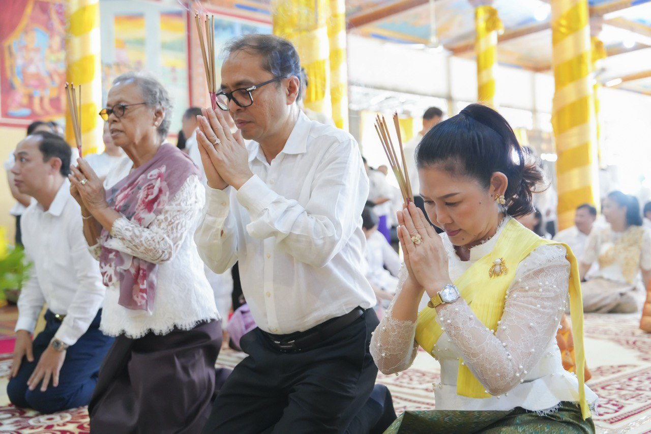 ក្នុងឱកាសដ៏ប្រពៃថ្លៃថ្លានេះផងដែរ ឯកឧត្តមឧបនាយករដ្ឋមន្ត្រីប្រចាំការ វង្សី វិស្សុត និងលោកជំទាវ ក្រុមគ្រួសារ ព្រមទាំងក្រុមការងារស្រុកមុខកំពូល រួមជាមួយក្រុមពុទ្ធបរស័ទទាំងអស់ក៏បានប្រារព្ធពិធីបង្សុកូលឧទ្ទិសកុសលជូនវិញ្ញាណក្ខន្ធបុព្វការីជនទាំងឡាយរួមមាន : មាតាបិតា ជីដូនជីតា និងញាតកាទាំង៧សន្តាន ដែលបានបែកកាយរំលាយខ័ន្ធទៅកាន់លោកខាងមុខហើយនោះ ព្រមទាំងឧទ្ទិសជូនដល់វិញ្ញាណក្ខន្ធបុព្វបុរស និងយុទ្ធជន ប្រជាជនអ្នកស្នេហាជាតិមាតុភូមិទាំងអស់ ជាពិសេសវីរៈកងទ័ពពលីលើសមរភូមិក្នុងពេលបំពេញបេសកកម្មការពារបូរណភាពទឹកដី នាពេលថ្មីៗកន្លងទៅនេះ សូមអនុមោទនាទទួលយកនូវកុសលផលបុណ្យទាំងឡាយនេះ និងសូមលោកអ្នកដ៏មានឧបការគុណទាំងនោះ បានរួចផុតពីទុក្ខទោសទាំងឡាយទាំងពួង និងសូមឱ្យបានទៅសោយសុខក្នុងសុគតិភពជាទីបរមសុខកុំបីឃ្លៀងឃ្លាតឡើយ៕ សូមអនុមោទនា!