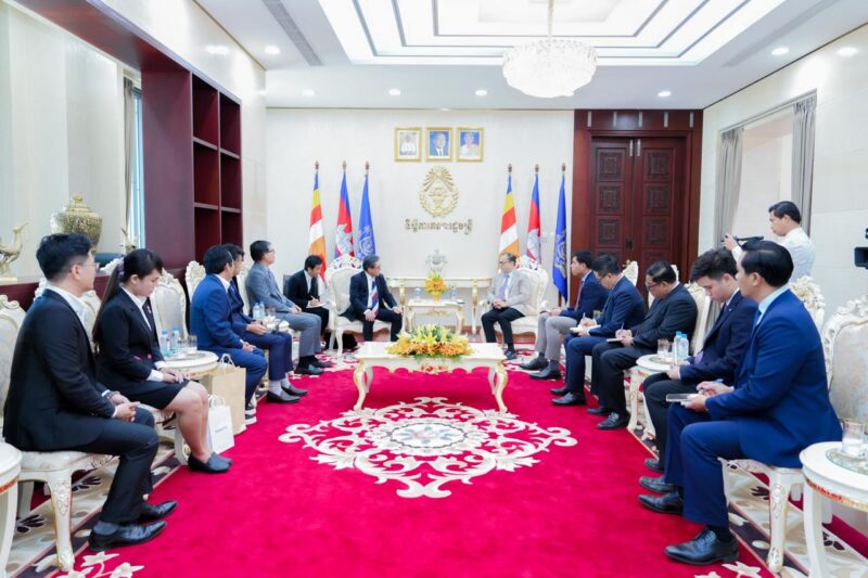 ភ្នំពេញ៖ នៅព្រឹកថ្ងៃទី២១ ខែវិច្ឆិកា ឆ្នាំ២០២៤ ឯកឧត្តម វង្សី វិស្សុត ឧបនាយករដ្ឋមន្ត្រីប្រចាំការ រដ្ឋមន្ត្រីទទួលបន្ទុកទីស្តីការគណៈរដ្ឋមន្ត្រី បានអនុញ្ញាតឱ្យលោក Taniguchi Kentaro ប្រធានក្រុមហ៊ុន Mirarth Holdings, Inc. ដែលជាក្រុមហ៊ុនជប៉ុន ចូលជួបសម្តែងការគួរសម និងជម្រាបជូនអំពីវឌ្ឍនភាពនៃគម្រោងវិនិយោគកែច្នៃគ្រាប់ស្វាយចន្ទីរបស់ក្រុមហ៊ុននៅក្នុងខេត្តកំពង់ធំ។