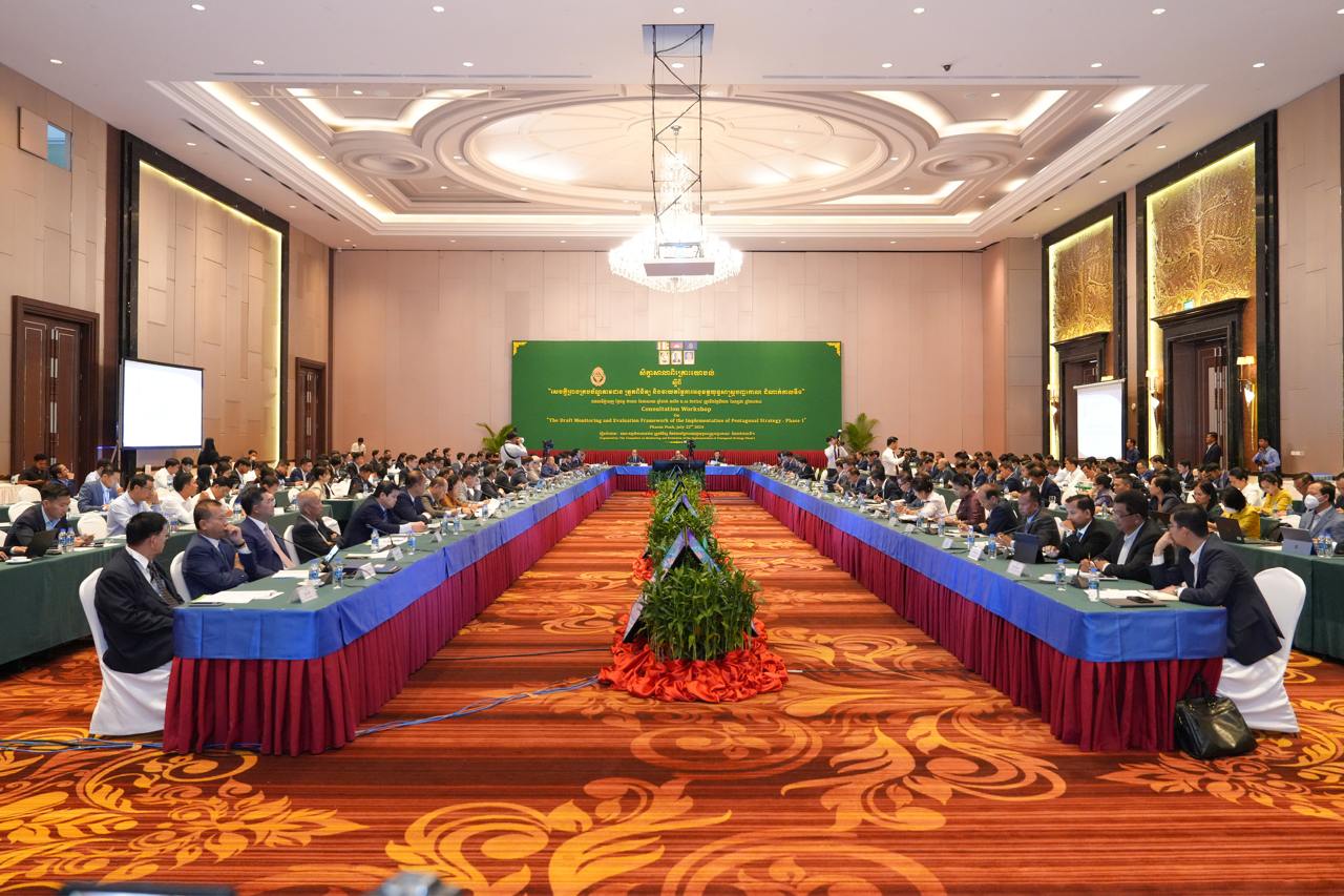 ភ្នំពេញ៖ នៅថ្ងៃចន្ទ ២រោច ខែអាសាឍ ឆ្នាំរោង ឆស័ក ព.ស.២៥៦៨ ត្រូវនឹងថ្ងៃទី២២ ខែកក្កដា ឆ្នាំ២០២៤ ឯកឧត្តម វង្សី វិស្សុត ឧបនាយករដ្ឋមន្ត្រីប្រចាំការ រដ្ឋមន្ត្រីទទួលបន្ទុកទីស្តីការគណៈរដ្ឋមន្ត្រី និងជាប្រធានគណៈកម្មាធិការតាមដាន ត្រួតពិនិត្យ និងវាយតម្លៃការអនុវត្ដយុទ្ធសាស្រ្ដបញ្ចកោណ ដំណាក់កាលទី១ (គ.យ.ប.) បានអញ្ជើញចូលរួមជាអធិបតីដឹកនាំសិក្ខាសាលាពិគ្រោះយោបល់ចុងក្រោយកម្រិតថ្នាក់ដឹកនាំ ស្ដីពី “សេចក្ដីព្រាងក្របខ័ណ្ឌតាមដាន ត្រួតពិនិត្យ និងវាយតម្លៃការអនុវត្តយុទ្ធសាស្ត្របញ្ចកោណ ដំណាក់កាលទី១” ដើម្បីពិភាក្សា ផ្លាស់ប្ដូរយោបល់ និងប្រមូលធាតុចូលចុងក្រោយពីថា្នក់ដឹកនាំក្រសួង ស្ថាប័នពាក់ព័ន្ធ ព្រមទាំងដៃគូអភិវឌ្ឍន៍ សំដៅធានាឱ្យសេចក្ដីព្រាងឯកសារក្របខ័ណ្ឌនេះ មានខ្លឹមសារគ្រប់ជ្រុងជ្រោយ មានគុណភាព និងអាចអនុវត្ដបាន។ សិក្ខាសាលានេះមានការចូលរួមផងដែរពីសំណាក់ ឯកឧត្តម ឈៀង យ៉ាណារ៉ា ទេសរដ្ឋមន្ត្រីទទួលបន្ទុកបេសកកម្មពិសេស ឯកឧត្តម ប៊ិន ត្រឈៃ រដ្ឋមន្ត្រីក្រសួងផែនការ, ឯកឧត្តម ហែម វណ្ឌឌី រដ្ឋមន្ត្រីក្រសួងឧស្សាហកម្ម សិប្បកម្ម និង នវានុវត្តន៍, រដ្ឋមន្ត្រីប្រតិភូអមនាយករដ្ឋមន្ត្រី, ថ្នាក់ដឹកនាំ និងមន្ត្រីជាន់ខ្ពស់នៃក្រសួង ស្ថាប័នពាក់ព័ន្ធ និង មន្រ្ដីជាន់ខ្ពស់នៃអគ្គលេខាធិការដ្ឋាន គ.យ.ប. ព្រមទាំង ដៃគូអភិវឌ្ឍន៍ និងអ្នកសារព័ត៌មាន ដែលបានចូលរួមប្រមាណជាង ៣០០នាក់។