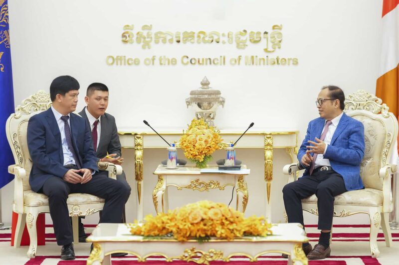 (រាជធានីភ្នំពេញ)៖ នាព្រឹកថ្ងៃទី២៣ ខែតុលា ឆ្នាំ២០២៥ ឯកឧត្តម វង្សី វិស្សុត ឧបនាយករដ្ឋមន្ត្រីប្រចាំការ រដ្ឋមន្ត្រីទទួលបន្ទុកទីស្តីការគណៈរដ្ឋមន្ត្រី បានទទួលពិភាក្សាការងារជាមួយអ្នកឧកញ៉ា លី ឃុនថៃ ប្រធានសមាគមសហព័ន្ធអ្នកវិនិយោគកម្ពុជា និងប្រតិភូក្រុមហ៊ុន Guangxi Mingdian Electric Co., Ltd. ចូលជួបសម្តែងការគួរសម និងពិភាក្សាការងារជុំវិញឱកាសវិនិយោគនៅក្នុងខេត្តកំពង់ធំ។