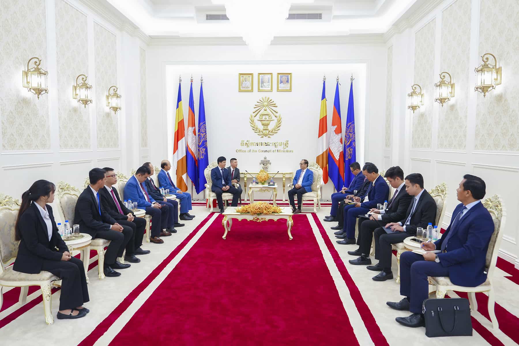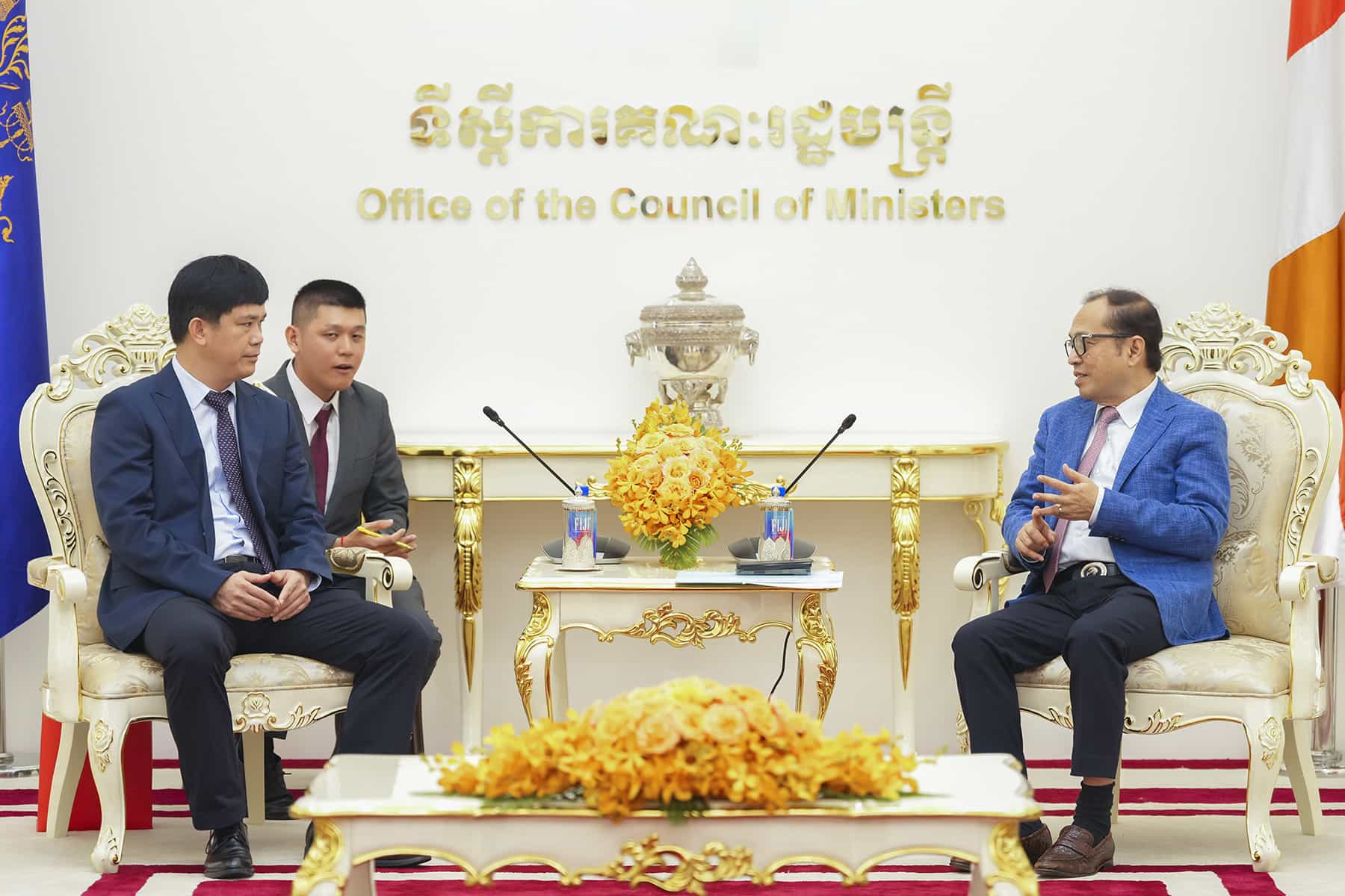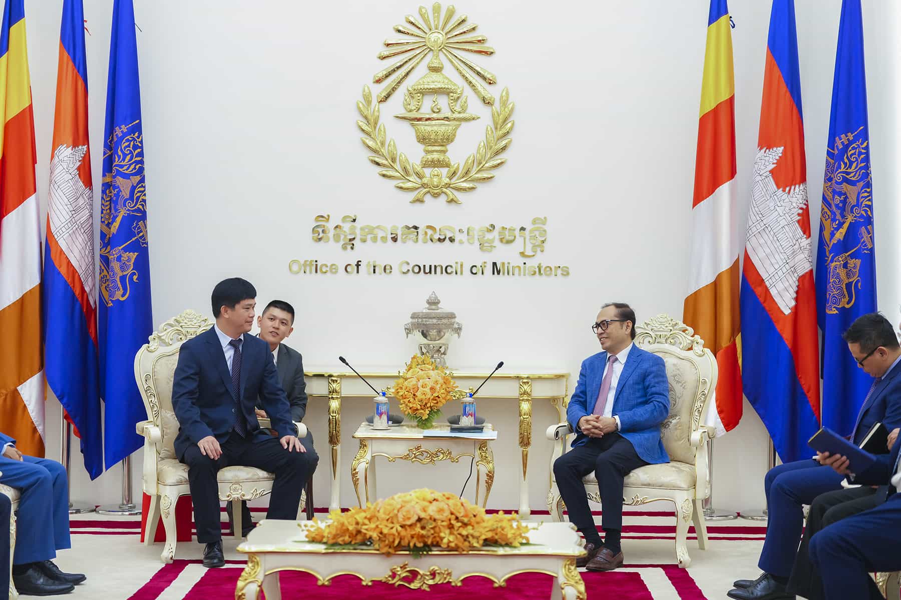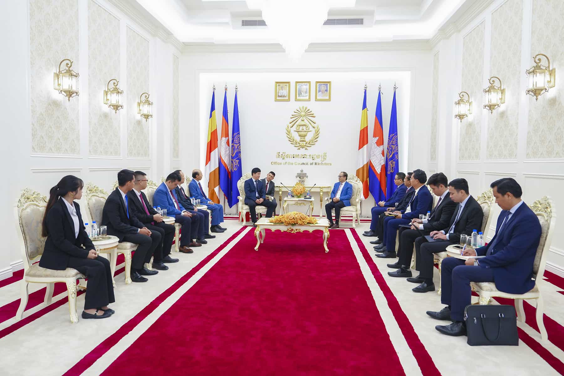 (រាជធានីភ្នំពេញ)៖ នាព្រឹកថ្ងៃទី២៣ ខែតុលា ឆ្នាំ២០២៥ ឯកឧត្តម វង្សី វិស្សុត ឧបនាយករដ្ឋមន្ត្រីប្រចាំការ រដ្ឋមន្ត្រីទទួលបន្ទុកទីស្តីការគណៈរដ្ឋមន្ត្រី បានទទួលពិភាក្សាការងារជាមួយអ្នកឧកញ៉ា លី ឃុនថៃ ប្រធានសមាគមសហព័ន្ធអ្នកវិនិយោគកម្ពុជា និងប្រតិភូក្រុមហ៊ុន Guangxi Mingdian Electric Co., Ltd. ចូលជួបសម្តែងការគួរសម និងពិភាក្សាការងារជុំវិញឱកាសវិនិយោគនៅក្នុងខេត្តកំពង់ធំ។