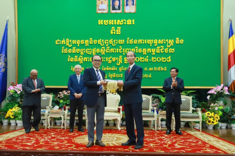 (ភ្នំពេញ)៖ ឯកឧត្ដម វង្សី វិស្សុត ឧបនាយករដ្ឋមន្ត្រីប្រចាំការ រដ្ឋមន្ត្រីទទួលបន្ទុកទីស្តីការគណៈរដ្ឋមន្ត្រី នៅព្រឹកថ្ងៃទី២៧ ខែធ្នូ ឆ្នាំ២០២៤ បានអញ្ជើញជាអធិបតីក្នុងពិធីប្រកាសផ្សព្វផ្សាយនិងដាក់ឱ្យអនុវត្តឯកសារសំខាន់ពីរគឺ «ផែនការយុទ្ធសាស្រ្តទីស្តីការគណៈរដ្ឋមន្ត្រី ឆ្នាំ២០២៤-២០២៨» ដែលដឹកនាំរៀបចំដោយឯកឧត្តមបណ្ឌិតសភាចារ្យ ហ៊ីង ថូរ៉ាក់ស៊ី រដ្ឋលេខាធិការប្រចាំការទីស្តីការគណៈរដ្ឋមន្ត្រី និង «ផែនទីបង្ហាញផ្លូវស្តីពីការជំរុញបរិវត្តកម្មឌីជីថលនៃទីស្តីការគណៈរដ្ឋមន្ត្រី ២០២៤-២០២៨» ដែលដឹកនាំរៀបចំដោយ ឯកឧត្តម ហ៊ុយ វណ្ណៈ រដ្ឋលេខាធិការនៃទីស្តីការគណៈរដ្ឋមន្ត្រី។