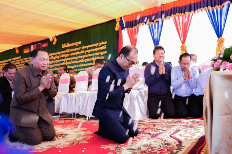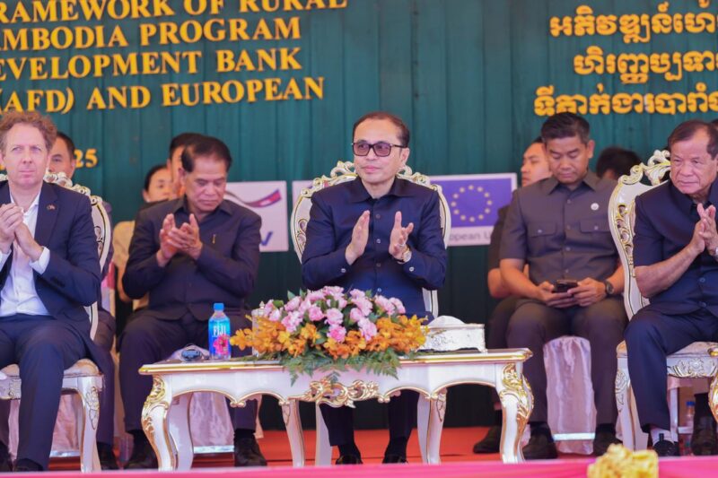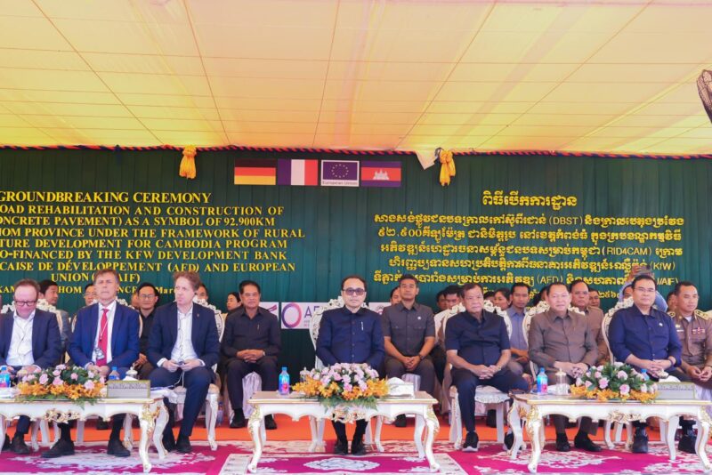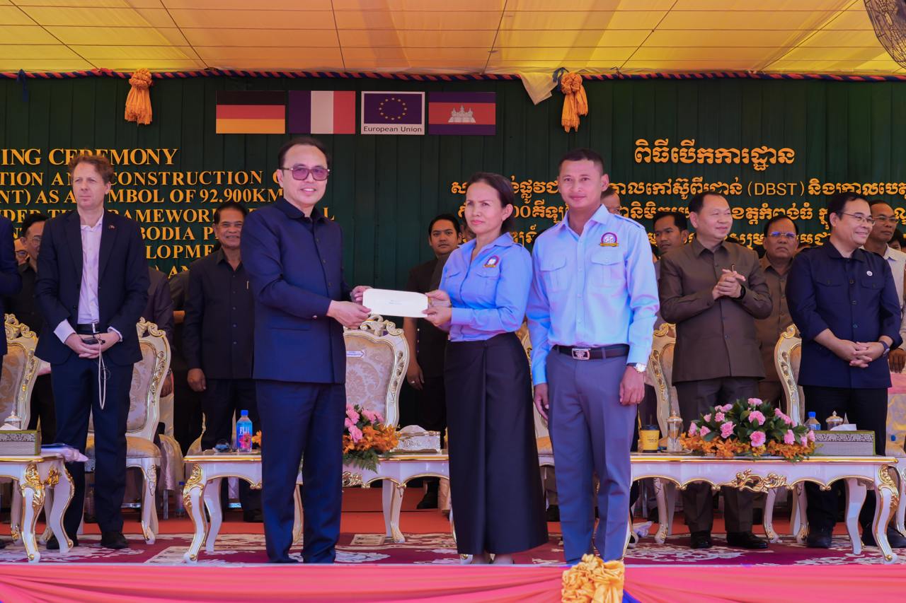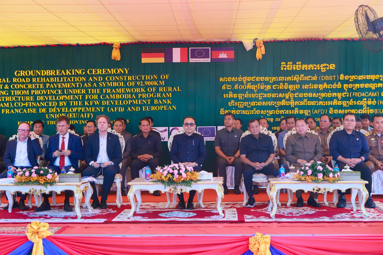 ក្នុងឱកាសនេះដែរ ឯកឧត្តម Igor DRIESMANS ឯកអគ្គរដ្ឋទូតសហភាពអឺរ៉ុប បានវាយតម្លៃខ្ពស់ ចំពោះភាពជាដៃគូដ៏រឹងមាំនិងកិច្ចសហការជិតស្និទ្ធរវាងសហភាពអឺរ៉ុបជាមួយរាជរដ្ឋាភិបាលកម្ពុជា ក្រោមគំនិត ផ្ដួចផ្ដើមរបស់សហគមន៍អឺរ៉ុប និងរដ្ឋជាសមាជិកអឺរ៉ុប ជាពិសេសប្រទេសបារាំង និងប្រទេសអាល្លឺម៉ង់ ក្នុងកិច្ចខិតខំប្រឹងប្រែងរួមគ្នា ជំរុញការលើកកម្ពស់សេដ្ឋកិច្ចនៅតាមទីជនបទដោះស្រាយបញ្ហាប្រឈមនៅតាមសហគមន៍ កាត់បន្ថយភាពក្រីក្រ ទប់ស្កាត់ផលប៉ះពាល់នៃការប្រែប្រួលអាកាសធាតុ លើកកម្ពស់សុខភាព និងគាំទ្រដល់ការធ្វើសមាហរណកម្មកម្ពុជាទៅក្នុងតំបន់ តាមរយៈគម្រោងហេដ្ឋារចនាសម្ព័ន្ធដឹកជញ្ជូន។ ឯកឧត្តម Jacques PELLET ឯកអគ្គរដ្ឋទូតបារាំង បានបន្ថែមថា គម្រោងនេះមិនមែនគ្រាន់តែជាគម្រោងសាងសង់ផ្លូវប៉ុណ្ណោះទេ ប៉ុន្តែគឺជាការវិនិយោគដ៏សំខាន់ទៅលើមនុស្ស ដោយកាត់បន្ថយភាពដាច់ឆ្ងាយនៃសហគមន៍នីមួយៗ កាត់បន្ថយពេលវេលានិងចំណាយធ្វើដំណើរ ព្រមទាំងបង្កើនលទ្ធភាពទទួលបានសេវាថែទាំសុខភាព ការអប់រំ និងឱកាសសេដ្ឋកិច្ច ដែលជាកត្តាចាំបាច់សម្រាប់ជីវភាពរបស់ប្រជាជនក្នុងមូលដ្ឋាន។ ជាមួយគ្នានេះ ឯកឧត្តម Stefan MESSERER ឯកអគ្គរដ្ឋទូតអាល្លឺម៉ង់ បានគូសរំលេចនូវសមិទ្ធផលសំខាន់ៗនៃកិច្ចសហប្រតិបតិ្តការកម្ពុជា-អាល្លឺម៉ង ដោយកន្លងមកប្រទេសអាល្លឺម៉ង់បានវិនិយោគសរុបប្រមាណ ៧៥,៥១៦លាន អឺរ៉ូ និង ៣១លាន Deutsche Mark (DM) ក្នុងការអភិវឌ្ឍហេដ្ឋារចនាសម្ព័ន្ធជនបទនៅព្រះរាជាណាចក្រកម្ពុជា។ ឯកឧត្តមឯកអគ្គរដ្ឋទូតទាំងបីរូប បានបង្ហាញនូវឆន្ទៈមោះមុតក្នុងការសហការយ៉ាងជិតស្និទ្ធជាមួយរាជរដ្ឋាភិបាលកម្ពុជា ដើម្បីបន្តគាំទ្រដល់ការអភិវឌ្ឍ និងការលើកកម្ពស់ជីវភាពរបស់ប្រជាជនកម្ពុជា។