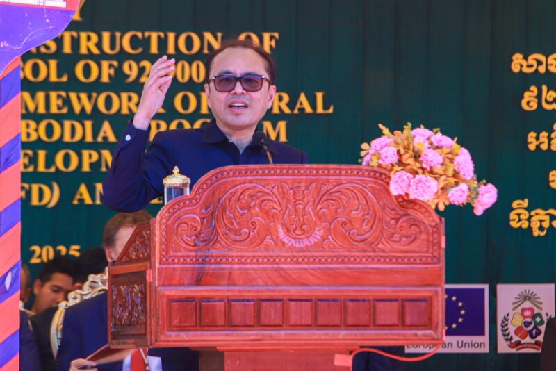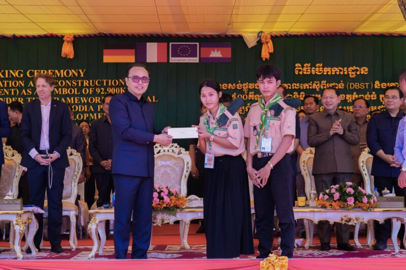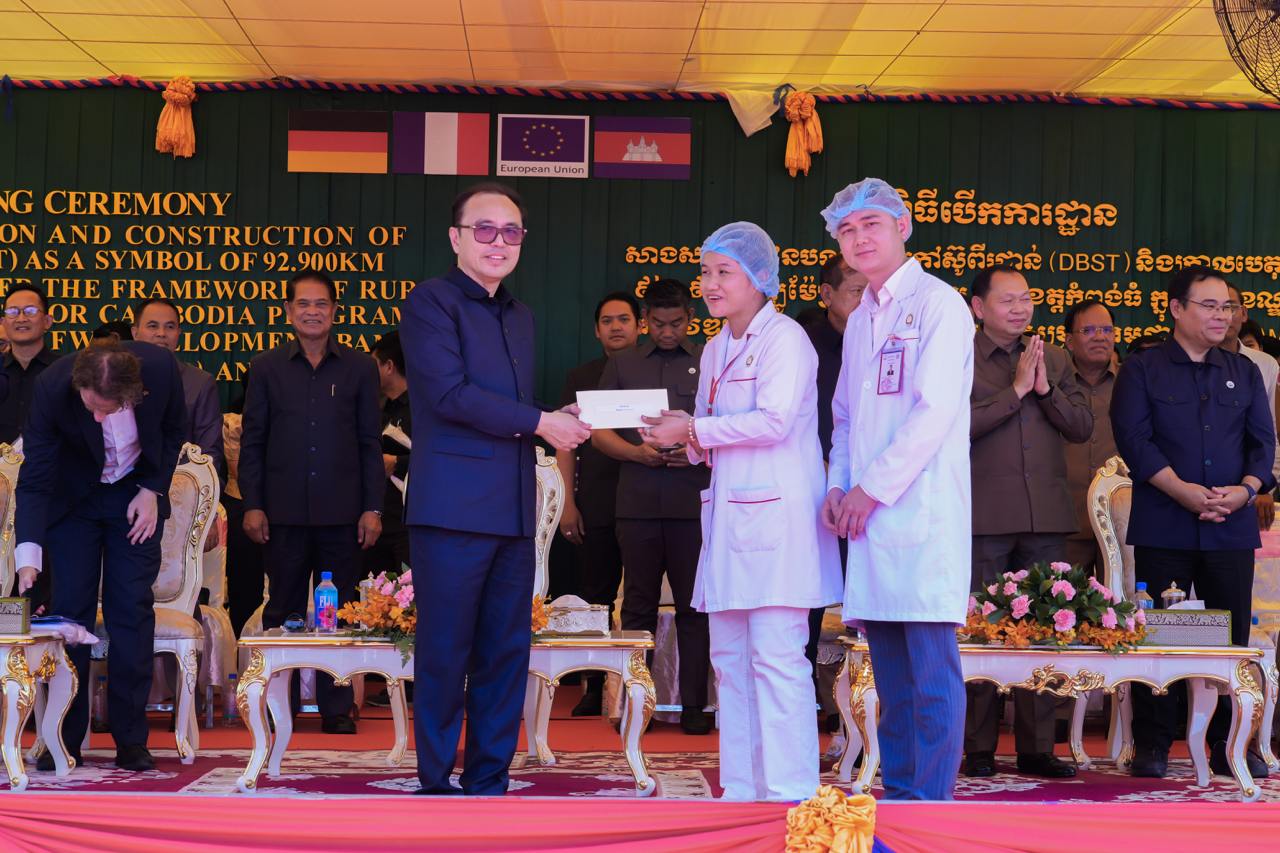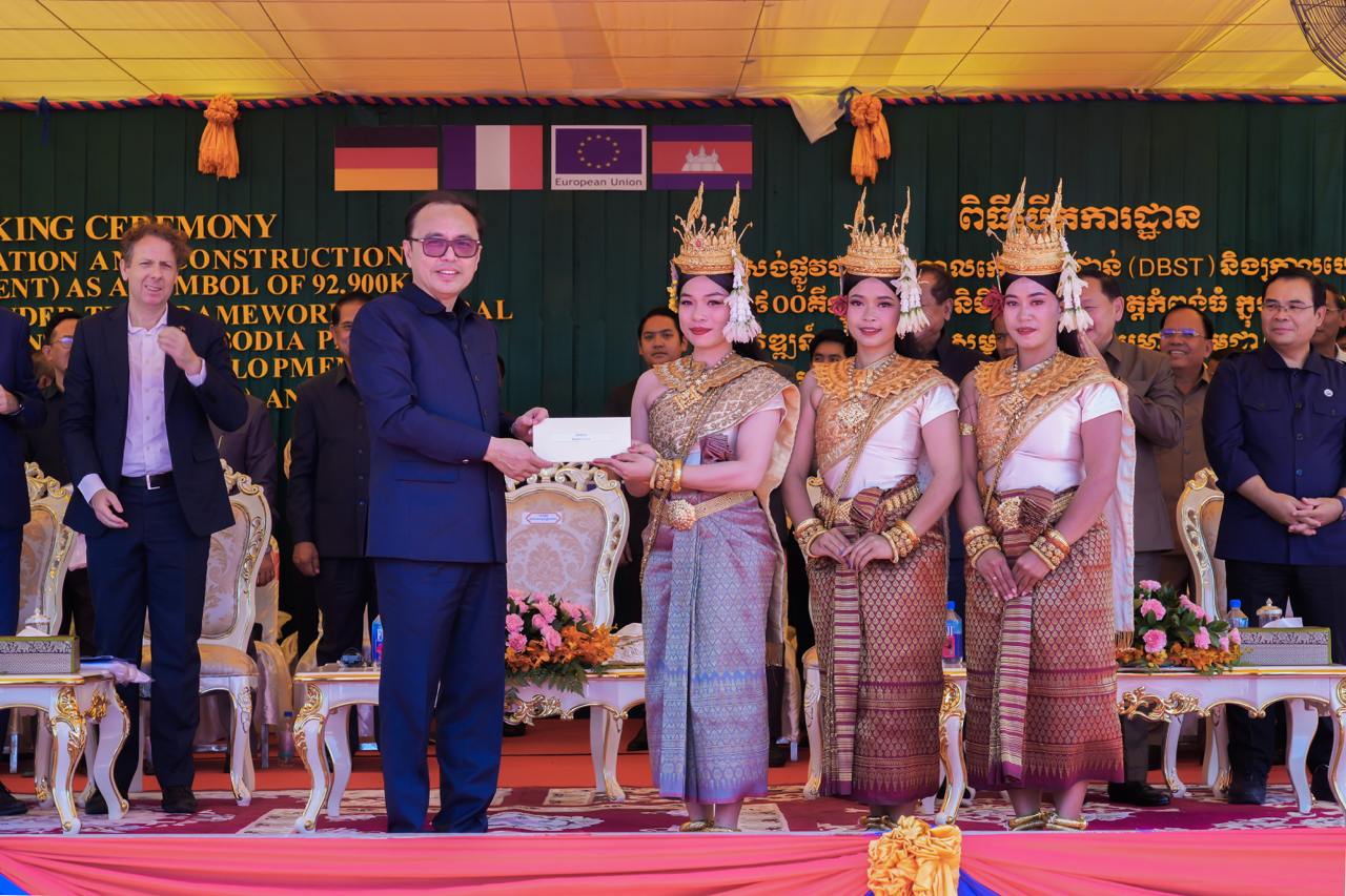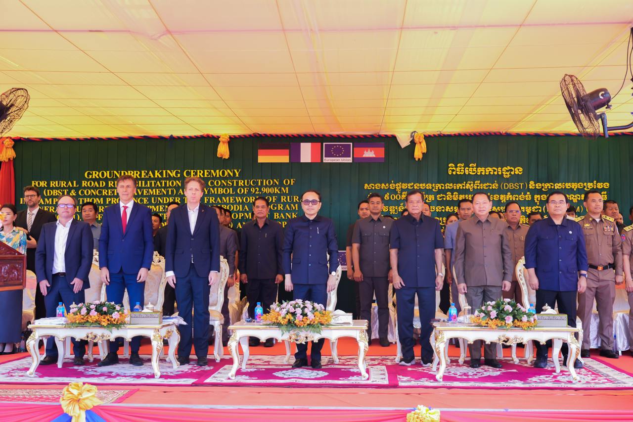 (កំពង់ធំ)៖ ព្រឹកថ្ងៃទី៣១ ខែមីនា ឆ្នាំ២០២៥ ឯកឧត្តម វង្សី វិស្សុត ឧបនាយករដ្ឋមន្រ្តីប្រចាំការ រដ្ឋមន្ត្រីទទួលបន្ទុកទីស្តីការគណៈរដ្ឋមន្ត្រី និងជាប្រធានក្រុមការងាររាជរដ្ឋាភិបាលចុះមូលដ្ឋានខេត្តកំពង់ធំ បានអញ្ជើញជាអធិបតីក្នុង ពិធីសម្ពោធបើកការដ្ឋានសាងសង់ផ្លូវក្រាលកៅស៊ូពីរជាន់ (DBST) និងផ្លូវបេតុងប្រវែង ៩២,៩គីឡូម៉ែត្រ ដែលប្រារព្ធធ្វើឡើងនៅភូមិទួលដំណាក់ ឃុំចុងដូង ស្រុកបារាយណ៍ ខេត្តកំពង់ធំ។ ពិធីនេះ មានការអញ្ជើញចូលរួមពីសំណាក់ឯកឧត្តម Igor DRIESMANS ឯកអគ្គរដ្ឋទូតសហភាពអឺរ៉ុប, ឯកឧត្តម Jacques PELLET ឯកអគ្គរដ្ឋទូតបារាំង, ឯកឧត្តម Stefan MESSERER ឯកអគ្គរដ្ឋទូតអាល្លឺម៉ង់, ឯកឧត្តមទេសរដ្ឋមន្ត្រី ថោង ខុន, ឯកឧត្តម ឆាយ ឫទ្ធិសែន រដ្ឋមន្រ្តីក្រសួងអភិវឌ្ឍន៍ជនបទ, ឯកឧត្តម ថោ ជេដ្ឋា រដ្ឋមន្រ្តីក្រសួងធនធានទឹកនិងឧតុនិយម, ឯកឧត្តមតំណាងក្រសួងសេដ្ឋកិច្ចនិងហិរញ្ញវត្ថុ តំណាងក្រសួង ស្ថាប័នពាក់ព័ន្ធ, ក្រុមប្រឹក្សានិងគណៈអភិបាលខេត្តកំពង់ធំ, ឯកឧត្តម លោកជំទាវ លោក លោកស្រី ជាទីប្រឹក្សាបច្ចេកទេស តំណាងក្រុមហ៊ុន ដៃគូអភិវឌ្ឍន៍ ព្រមទាំងបងប្អូនប្រជាពលរដ្ឋ លោកគ្រូ អ្នកគ្រូ និងសិស្សានុសិស្ស សរុបប្រមាណ១៦០០នាក់។