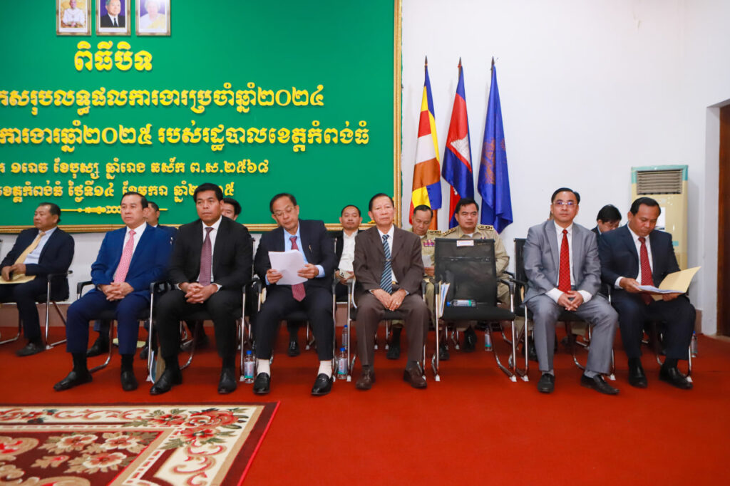 បន្ទាប់ពីបានស្តាប់របាយការណ៍របស់ ឯកឧត្តម នួន ផារ័ត្ន អភិបាលនៃគណៈអភិបាលខេត្តកំពង់ធំ ស្តីពីលទ្ធផលការងារប្រចាំឆ្នាំ២០២៤ និងទិសដៅការងារបន្តឆ្នាំ២០២៥ របស់រដ្ឋបាលខេត្ត ក្នុងនាម សម្តេចមហាបវរធិបតី ហ៊ុន ម៉ាណែត និងក្នុងនាមប្រធានក្រុមការងាររាជរដ្ឋាភិបាលចុះមូលដ្ឋានខេត្ត ឯកឧត្ដម វង្សី វិស្សុត ឧបនាយករដ្ឋមន្ត្រីប្រចាំការ បានសម្តែងការអបអរសាទរនិងវាយតម្លៃខ្ពស់ចំពោះកិច្ចខិតខំប្រឹងប្រែងរបស់ ឯកឧត្តម លោកជំទាវ លោក លោកស្រី ដែលជាថ្នាក់ដឹកនាំគ្រប់លំដាប់ថ្នាក់ មន្ត្រីរាជការ និងកងកម្លាំងប្រដាប់អាវុធទាំងអស់នៃខេត្តកំពង់ធំ ដែលបានយកអស់កម្លាំងកាយចិត្ត ប្រាជ្ញា ស្មារតី ខិតខំប្រឹងប្រែង យកចិត្តទុកដាក់អនុវត្តភារកិច្ចយ៉ាងសកម្ម ប្រកបដោយការទទួលខុសត្រូវខ្ពស់ សម្រេចបាននូវវឌ្ឍនភាពនិងសមិទ្ធផលជាច្រើន។ ការខិតខំប្រឹងប្រែងនេះ បានឆ្លុះបញ្ចាំងពីការចូលរួមយ៉ាងសកម្មក្នុងការអនុវត្តនូវយុទ្ធសាស្ត្របញ្ចកោណដំណាក់កាលទី១ កម្មវិធីគោលនយោបាយជាអាទិភាពទាំង៦ វិធានការគន្លឹះទាំង៥ ព្រមទាំងកិច្ចការ កែទម្រង់សំខាន់នានា របស់រាជរដ្ឋាភិបាលនីតិកាលទី៧នៃរដ្ឋសភា សំដៅរួមចំណែកថែរក្សាសន្តិភាព ស្ថិរភាពនយោបាយ សន្តិសុខ សណ្ដាប់ធ្នាប់សាធារណៈ និងសុវត្ថិភាពសង្គម, ការលើកកម្ពស់លទ្ធិប្រជាធិបតេយ្យ សេរីពហុបក្ស, ការពង្រឹងនីតិរដ្ឋ និងការអភិវឌ្ឍសង្គម-សេដ្ឋកិច្ច ឱ្យកាន់តែរឹងមាំប្រកបដោយចីរភាព បរិយាបន្ន និងផ្ដល់ផលប្រយោជន៍ដល់ប្រជាជនខេត្តកំពង់ធំ។