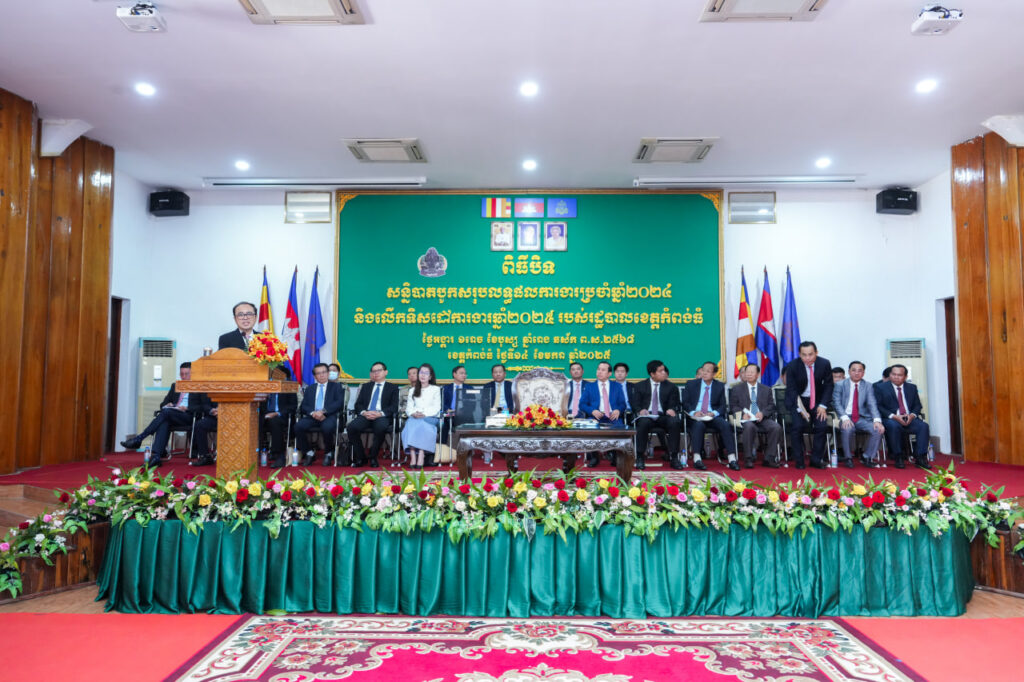 (កំពង់ធំ)៖ ព្រឹកថ្ងៃអង្គារ ទី១៤ ខែមករា ឆ្នាំ២០២៥ ឯកឧត្តម វង្សី វិស្សុត ឧបនាយករដ្ឋមន្រ្តីប្រចាំការ រដ្ឋមន្រ្តីទទួលបន្ទុកទីស្ដីការគណៈរដ្ឋមន្ត្រី និងជាប្រធានក្រុមការងាររាជរដ្ឋាភិបាលចុះមូលដ្ឋានខេត្តកំពង់ធំ បានអញ្ជើញជាអធិបតីក្នុងពិធីបិទសន្និបាតបូកសរុបលទ្ធផលការងារប្រចាំឆ្នាំ២០២៤ និងលើកទិសដៅការងារឆ្នាំ២០២៥ របស់រដ្ឋបាលខេត្តកំពង់ធំ ដោយមានការអញ្ជើញចូលរួមពីឯកឧត្តមបណ្ឌិត ថោង ខុន ទេសរដ្ឋមន្ត្រី, ឯកឧត្តម ហួត ហាក់ រដ្ឋមន្ត្រីក្រសួងទេសចរណ៍, លោកជំទាវ កុយ ពិសី រដ្ឋមន្ត្រីប្រតិភូអមនាយករដ្ឋមន្ត្រី, ឯកឧត្ដម តំណាងក្រសួងមហាផ្ទៃ, ឯកឧត្តម លោកជំទាវ រដ្ឋលេខាធិការ អនុរដ្ឋលេខាធិការ អនុប្រធានក្រុមការងាររាជរដ្ឋាភិបាលចុះមូលដ្ឋានខេត្តកំពង់ធំ, ឯកឧត្ដមប្រធានក្រុមប្រឹក្សាខេត្ត, ឯកឧត្ដមអភិបាលនៃគណៈអភិបាលខេត្តកំពង់ធំ, ឯកឧត្ដម លោកជំទាវ សមាជិក ក្រុមប្រឹក្សាខេត្ត ប្រធានសាលាដំបូងនិងអយ្យការអមសាលាដំបូងខេត្ត,លោក លោកស្រី ថ្នាក់ដឹកនាំ មន្ត្រីរាជការ គ្រប់លំដាប់ថ្នាក់នៃរដ្ឋបាលខេត្ត មន្ទីរ អង្គភាពជុំវិញខេត្ត និងកម្លាំងមានសមត្ថកិច្ច ស្រុក ក្រុង ឃុំ សង្កាត់ សរុបប្រមាណ៥០០រូប។