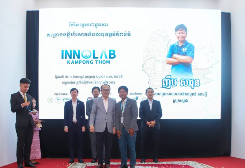 (កំពង់ធំ)៖ នារសៀលថ្ងៃទី១១ ខែតុលា ឆ្នាំ២០២៥ ឯកឧត្តម វង្សី វិស្សុត ឧបនាយករដ្ឋមន្រ្តីប្រចាំការ រដ្ឋមន្រ្តីទទួលបន្ទុកទីស្តីការគណៈរដ្ឋមន្រ្តី​ និងជាប្រធានក្រុមការងាររាជរដ្ឋាភិបាលចុះមូលដ្ឋានខេត្តកំពង់ធំ​អញ្ជើញជាអធិបតីក្នុងពិធីសម្ពោធជាផ្លូវការ «គម្រោងមន្ទីរពិសោធន៍នវានុវត្តន៍កំពង់ធំ (InnoLab Kampong Thom)» ដោយរួមជាមួយនឹងការប្រកាសជាផ្លូវការនូវបេក្ខជនទាំង២០រូប ដែលជាសហគ្រិនក្នុងខេត្តកំពង់ធំ និងដែលត្រូវបានជ្រើសរើសដើម្បីផ្តល់ការបណ្តុះបណ្តាល និងបន្តធ្វើការប្រកួតប្រជែងក្នុងវគ្គបន្ត នៅក្នុងក្របខ័ណ្ឌគម្រោង។