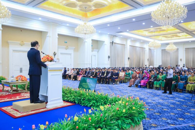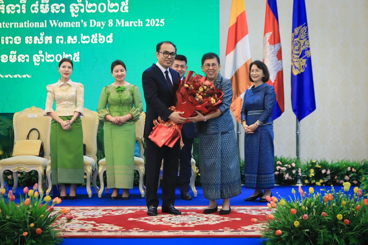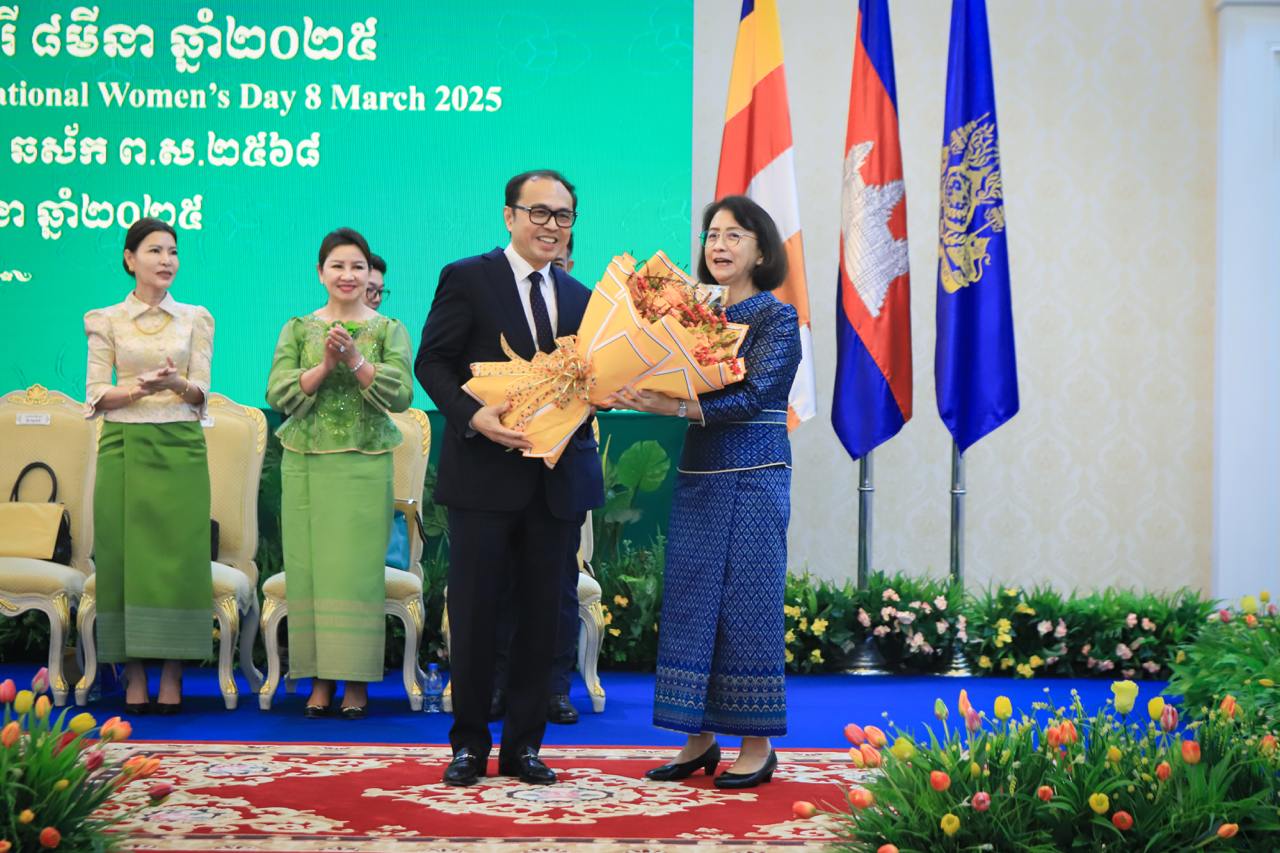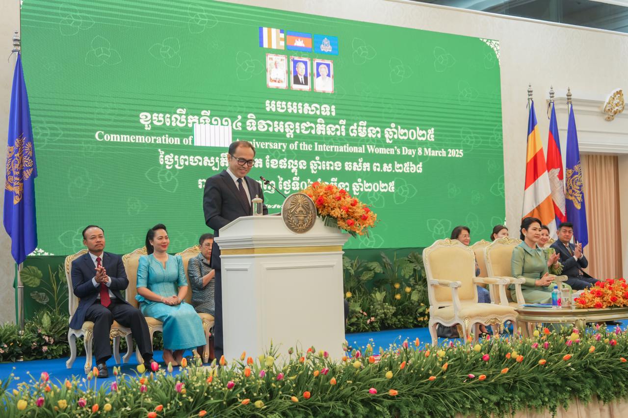 (ភ្នំពេញ)៖ ព្រឹកថ្ងៃទី៦ ខែមីនា ឆ្នាំ២០២៥ ឯកឧត្តម វង្សី វិស្សុត ឧបនាយករដ្ឋមន្រ្តីប្រចាំការ រដ្ឋមន្ត្រីទទួលបន្ទុកទីស្តីការគណៈរដ្ឋមន្ត្រី តំណាងដ៏ខ្ពង់ខ្ពស់សម្តេចមហាបវរធិបតី ហ៊ុន ម៉ាណែត នាយករដ្ឋមន្រ្តី នៃព្រះរាជាណាចក្រកម្ពុជា បានអញ្ជើញជាអធិបតីក្នុងពិធីអបអរសាទរ ខួបលើកទី១១៤ ទិវាអន្តរជាតិនារី ៨មីនា ឆ្នាំ២០២៥ ក្រោមប្រធានបទ «សិទ្ធិ សមភាព និងភាពអង់អាច ចំពោះស្រ្តីនិងក្មេងស្រីគ្រប់រូប» នៅវិមានសន្តិភាព។ ពិធីនេះ ក៏មានការអញ្ជើញចូលរួមពីសំណាក់លោកជំទាវ ឯកឧត្តម ជាសមាជិកព្រឹទ្ធសភា រដ្ឋសភារាជរដ្ឋាភិបាល អង្គទូត និងលោកជំទាវ ឯកឧត្តម លោកស្រី លោក ដែលជាមន្រ្តីជាន់ខ្ពស់ អញ្ជើញមកពីតាមក្រសួង ស្ថាប័នានា និងពីថ្នាក់ក្រោមជាតិ ព្រមទាំងភ្ញៀវជាតិនិងអន្តរជាតិ ប្រមាណជាង ៩០០នាក់។