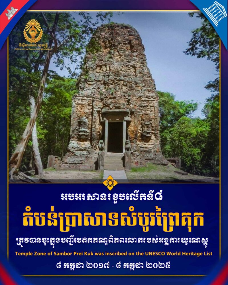 អបអរសាទរខួបលើកទី៨ តំបន់ប្រាសាទសំបូរព្រៃគុក ត្រូវបានចុះក្នុងបញ្ចីបេតិកភណ្ឌពិភពលោករបស់អង្គការយូណេស្កូ ៨ កក្កដា ២០១៧ ~ ៨ កក្កដា ២០២៥