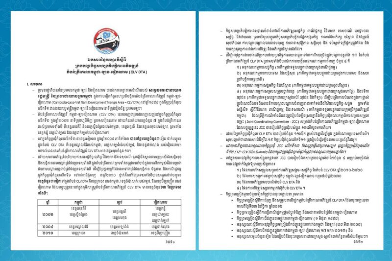 ឯកសារជំនួយស្មារតីស្តីពី ក្របខណ្ឌកិច្ចសហប្រតិបត្តិការអភិវឌ្ឍន៍តំបន់ត្រីកោណកម្ពុជា-ឡាវ-វៀតណាម (CLV DTA)