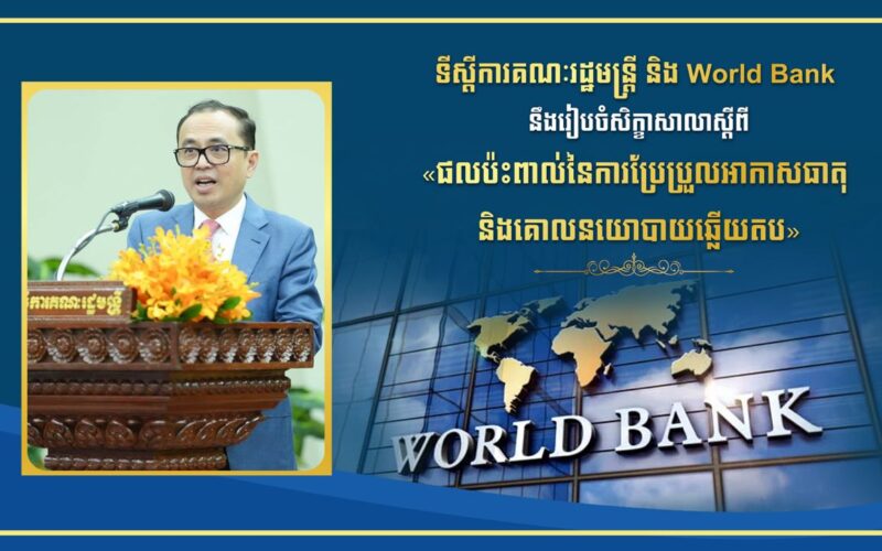 ទីស្តីការគណៈរដ្ឋមន្រ្តី និង World Bank នឹងរៀបចំសិក្ខាសាលាស្តីពី «ផលប៉ះពាល់នៃការប្រែប្រួលអាកាសធាតុ និងគោលនយោបាយឆ្លើយតប»