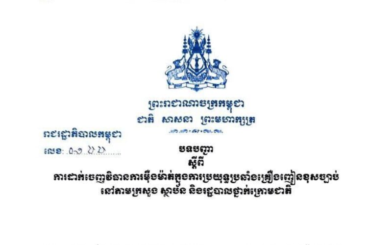 បទបញ្ជារបស់រាជរដ្ឋាភិបាលស្តីពីការដាក់ចេញវិធានការម៉ឺងម៉ាត់ក្នុងការប្រយុទ្ធប្រឆាំងគ្រឿងញៀនខុសច្បាប់នៅតាមក្រសួង ស្ថាប័ន និងរដ្ឋបាលថ្នាក់ក្រោមជាតិ
