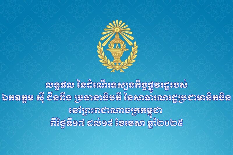 លទ្ធផល នៃដំណើរទស្សនកិច្ចផ្លូវរដ្ឋរបស់ ឯកឧត្តម ស៊ី ជីនពីង ប្រធានាធិបតី នៃសាធារណរដ្ឋប្រជាមានិតចិន នៅព្រះរាជាណាចក្រកម្ពុជា ពីថ្ងៃទី១៧ ដល់១៨ ខែមេសា ឆ្នាំ២០២៥