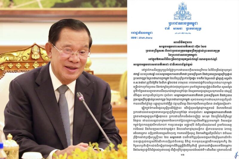 សារលិខិតអបអរសាទរ និងជូនពរ លោកជំទាវបណ្ឌិត ពេជ ចន្ទមុន្នី ហ៊ុនម៉ាណែត ក្នុងឱកាសទទួលបាននូវពានរង្វាន់ «Smile Asia Philanthropic Visionary Award» លើកទី២