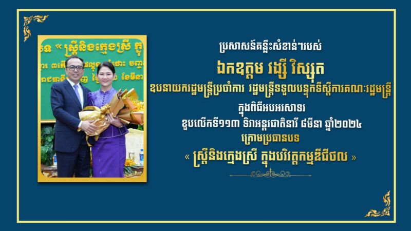 ឯកឧត្តម ឧបនាយករដ្ឋមន្ត្រីប្រចាំការ វង្សី វិស្សុត ចាត់ទុកការលើកកម្ពស់ស្ត្រី និងក្មេងស្រីក្នុងបរិវត្តកម្មឌីជីថល គឺជារឿងចាំបាច់សម្រាប់ជំរុញការអភិវឌ្ឍន៍សង្គម និងសេដ្ឋកិច្ច