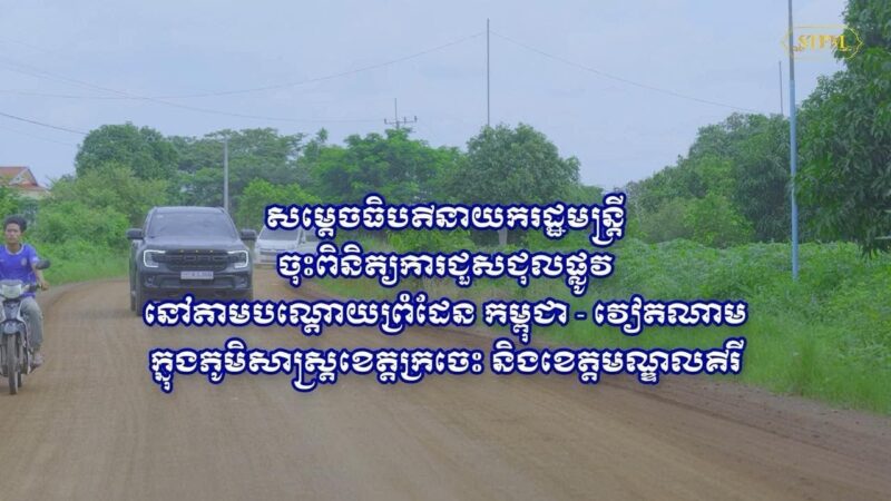 សម្តេចធិបតី ហ៊ុន ម៉ាណែត អញ្ជើញចុះពិនិត្យសកម្មភាពជួសជុលផ្លូវតាមបន្ទាត់ព្រំដែនរបស់កងវិស្វកម្មអគ្គបញ្ជាការ និងពិនិត្យមើលជាក់ស្តែងអំពីស្ថានភាពជីវភាពរស់នៅរបស់ប្រជាពលរដ្ឋខ្មែរ ដែលរស់នៅជាប់បណ្ដោយព្រំដែនកម្ពុជា-វៀតណាម ក្នុងខេត្តក្រចេះ និងខេត្តមណ្ឌលគិរី ថ្ងៃទី៣០ ខែកក្កដា ២០២៤។