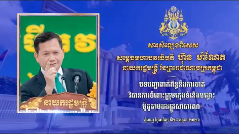 សារពិសេសសម្ដេចធិបតី៖ សូម ឯកឧត្ដម លោកជំទាវ អភិបាលរាជធានី ខេត្ត បង្ក្រាបក្មេងទំនើង កាប់ចាក់ ក្រុមដាវសាំម៉ូរៃ និងក្មេងទំនើងបង្ហោះម៉ូតូ ឱ្យបានជាប់ជាប្រចាំ ដូចភ្លៀងរលឹម។ សមត្ថកិច្ចត្រូវឃាត់ទុកម៉ូតូរបស់ក្មេងទំនើងទុក ៣ខែ សម្រាប់លើកទី១ និង ៦ខែ បើមិនរាងចាល។