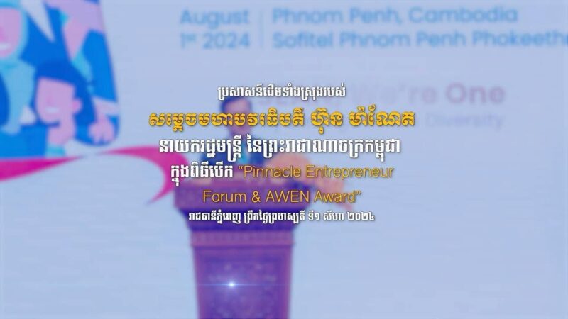 ប្រសាសន៍ដើមទាំងស្រុងរបស់ សម្តេចមហាបវរធិបតី ហ៊ុន ម៉ាណែត នាយករដ្ឋមន្ត្រី នៃព្រះរាជាណាចក្រកម្ពុជា​​ ក្នុងពិធីបើក “Pinnacle Entrepreneur Forum & AWEN Award”​ ។