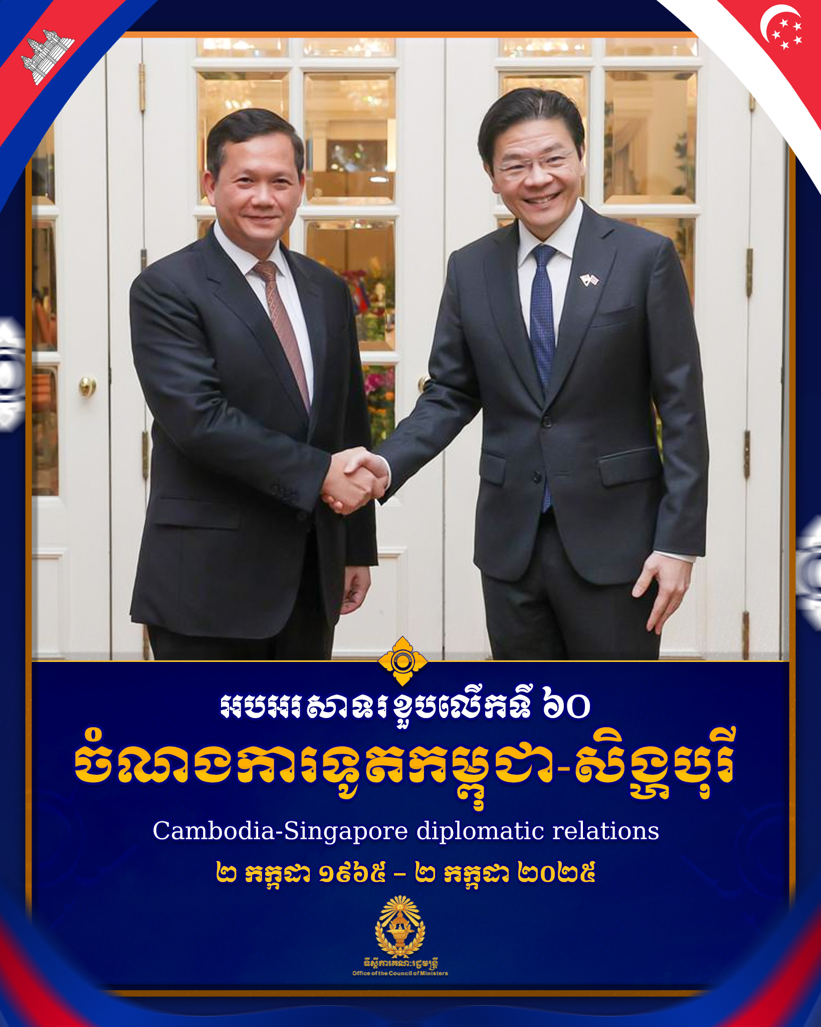 អបអរសាទរខួបលើកទី ៦០ ចំណងការទូតកម្ពុជា-សិង្ហបុរី ២ កក្កដា ១៩៦៥ ~ ២ កក្កដា ២០២៥